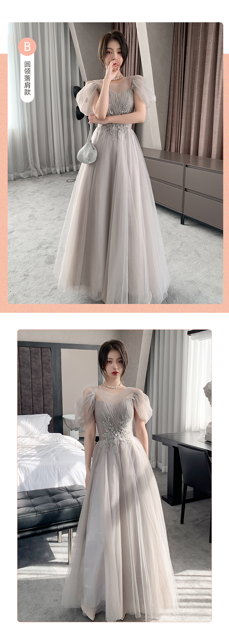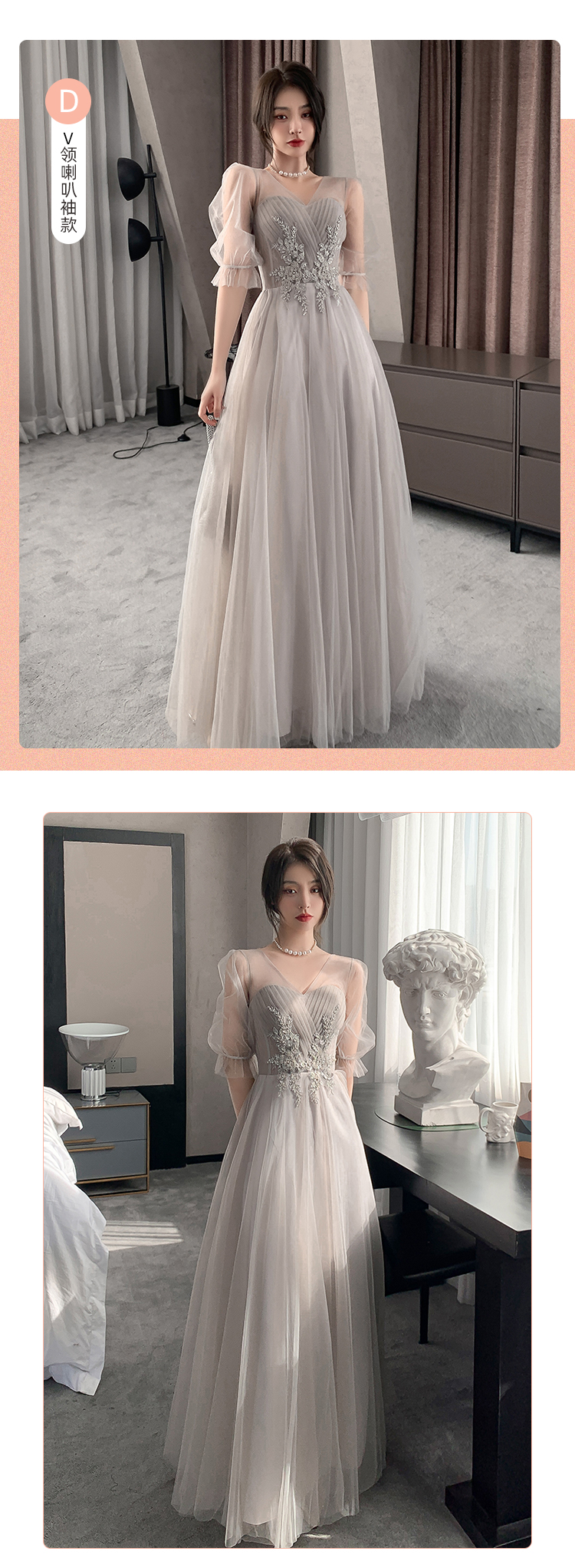 355 gray A long;355 gray B long model;355 Gray C long model;355 gray D long model;Long, A-line, mid-length;355 gray B medium long model;355 gray C model medium length;355 Gray D medium long model;355 Champagne Powder A medium long model;355 champagne B model B medium long model;355 Champagne Powder C medium long model;355 Champagne Powder D medium long model;355 Champagne Powder A long model;355 Champagne Powder B long model;355 Champagne Powder C long model;355 Champagne Powder D long model