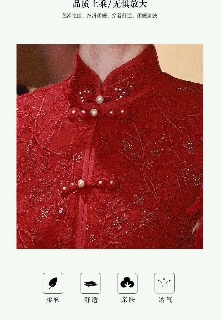 Cheongsam, evening dress, red cloak, wedding dress, skirt, set, Chinese style