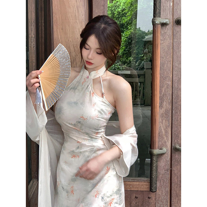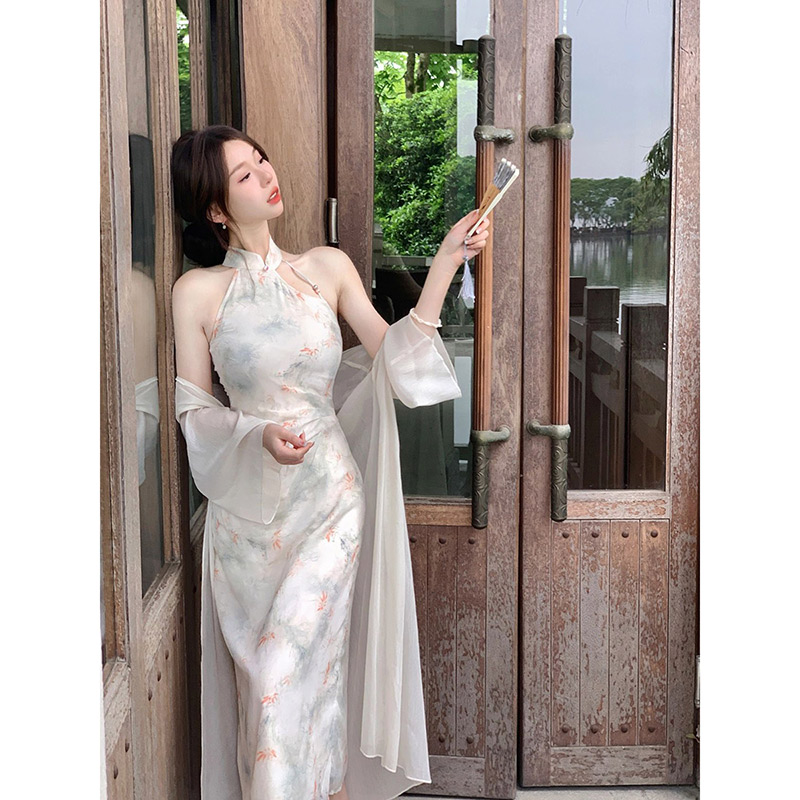 Cheongsam, skirt, cardigan, summer set, Chinese style, floral print, slim fit
