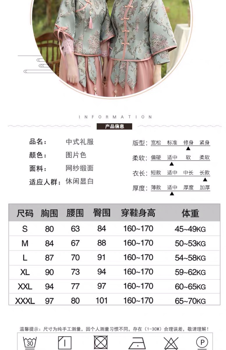 - Color: 90 % new rental price (satin sleeve);90 % of the new rental price (lace yarn sleeve);Deposit