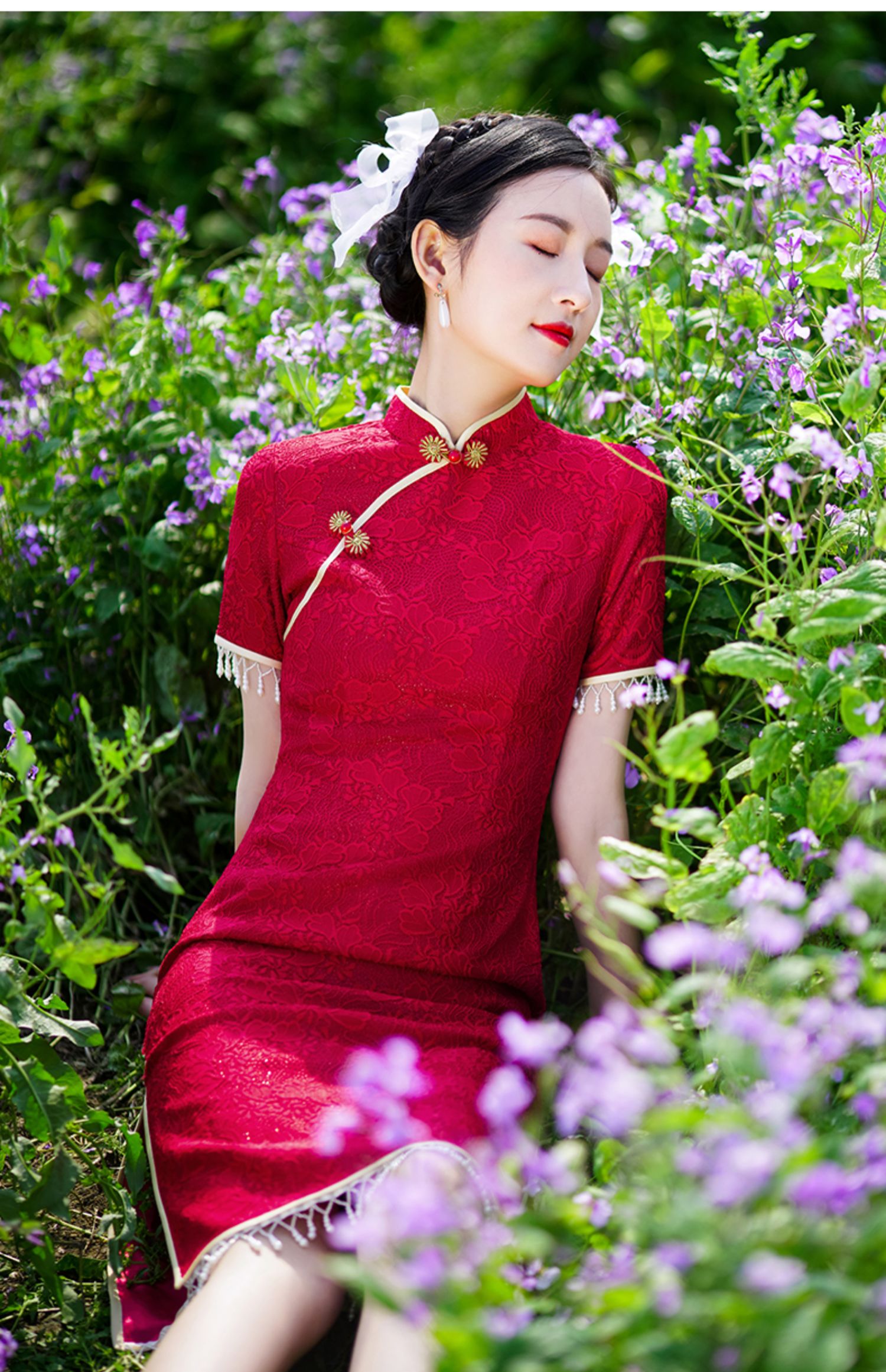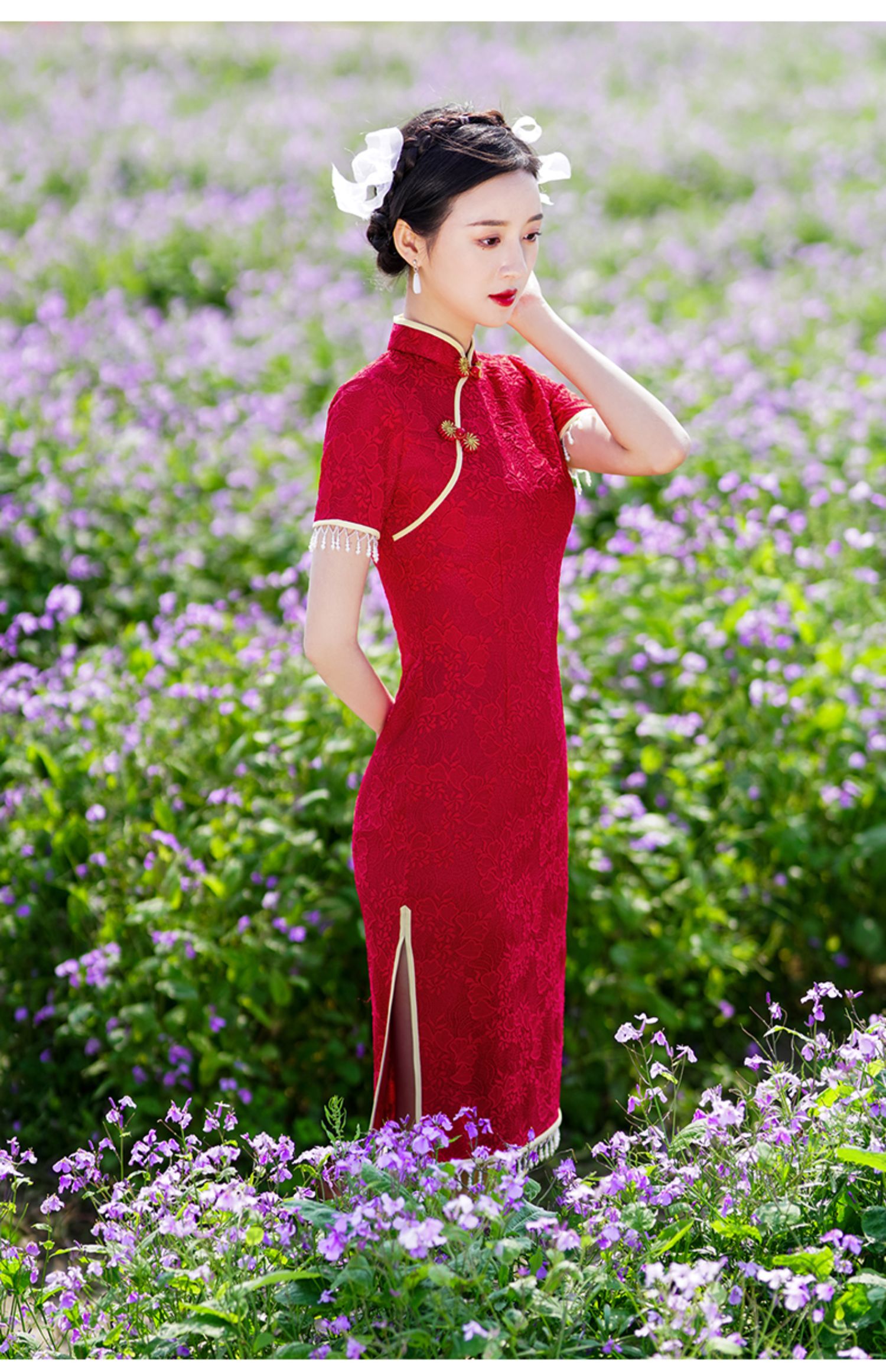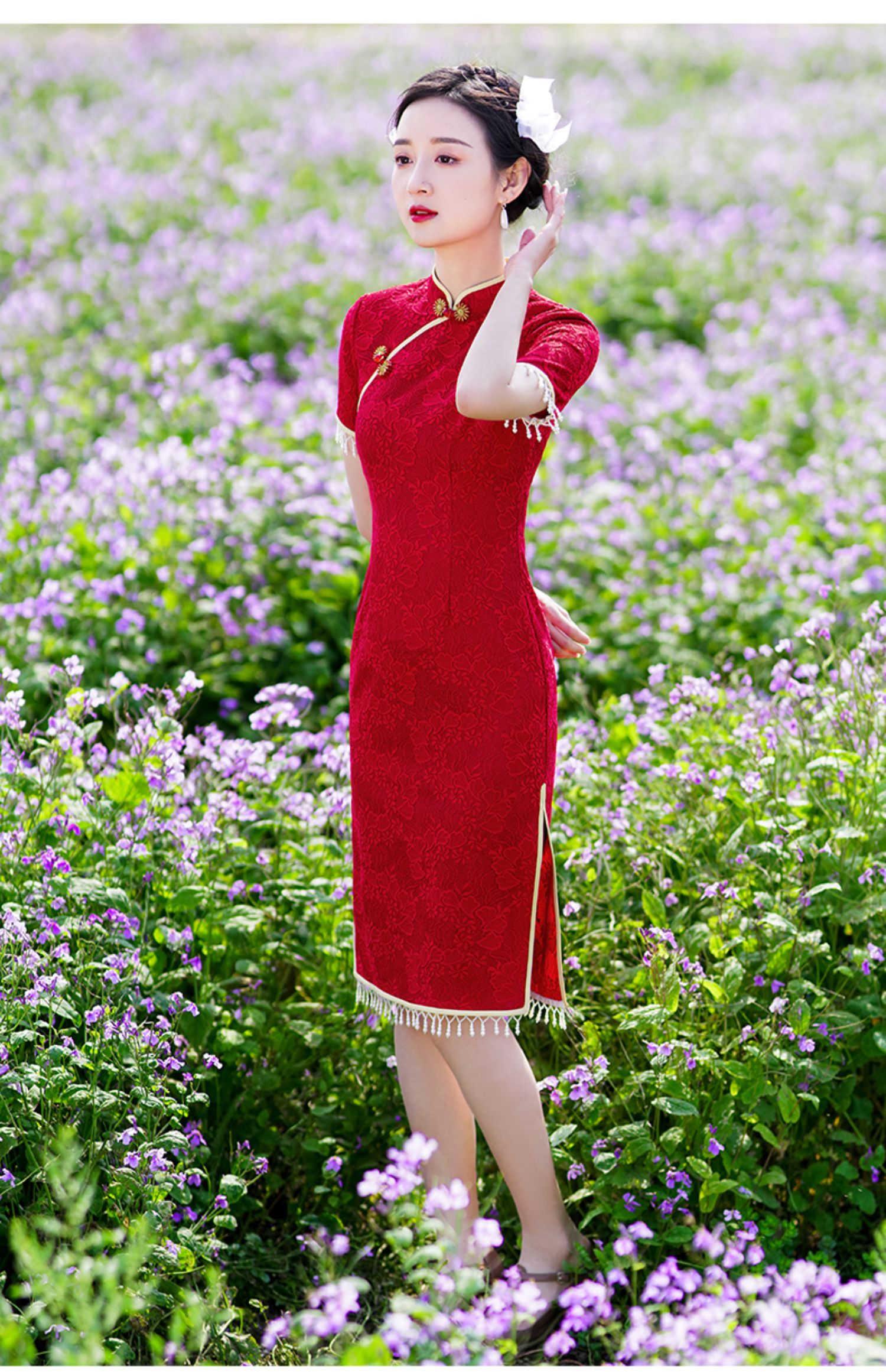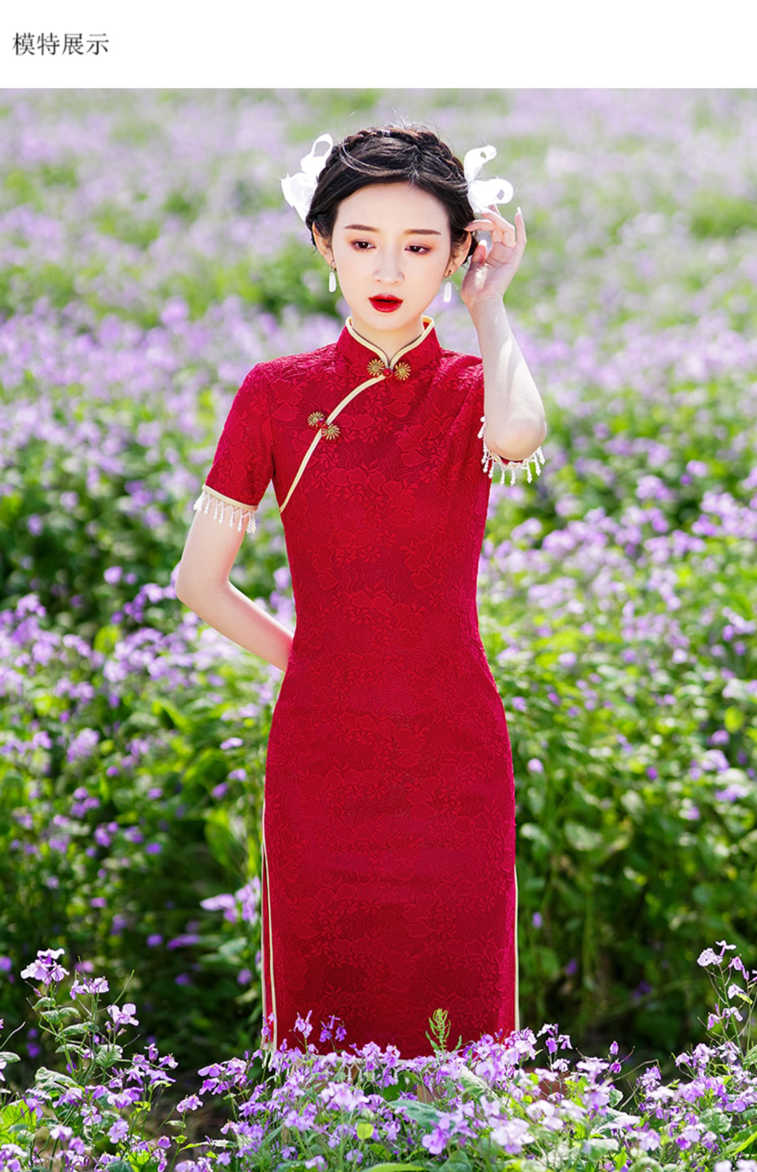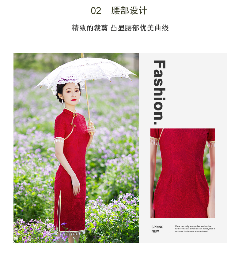 • Red evening dress, thin retro lightweight summer cheongsam, 2021 years
