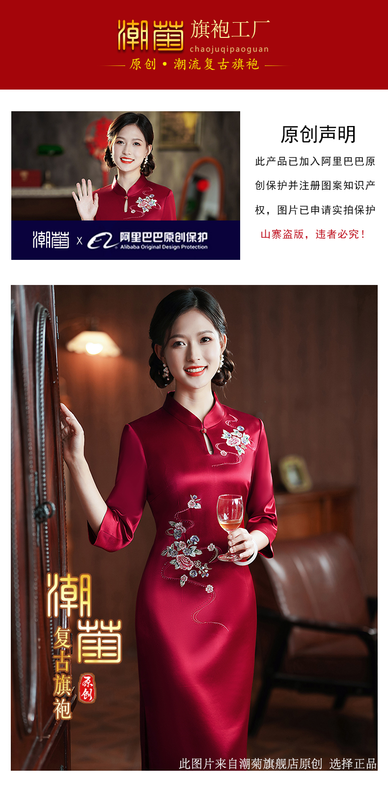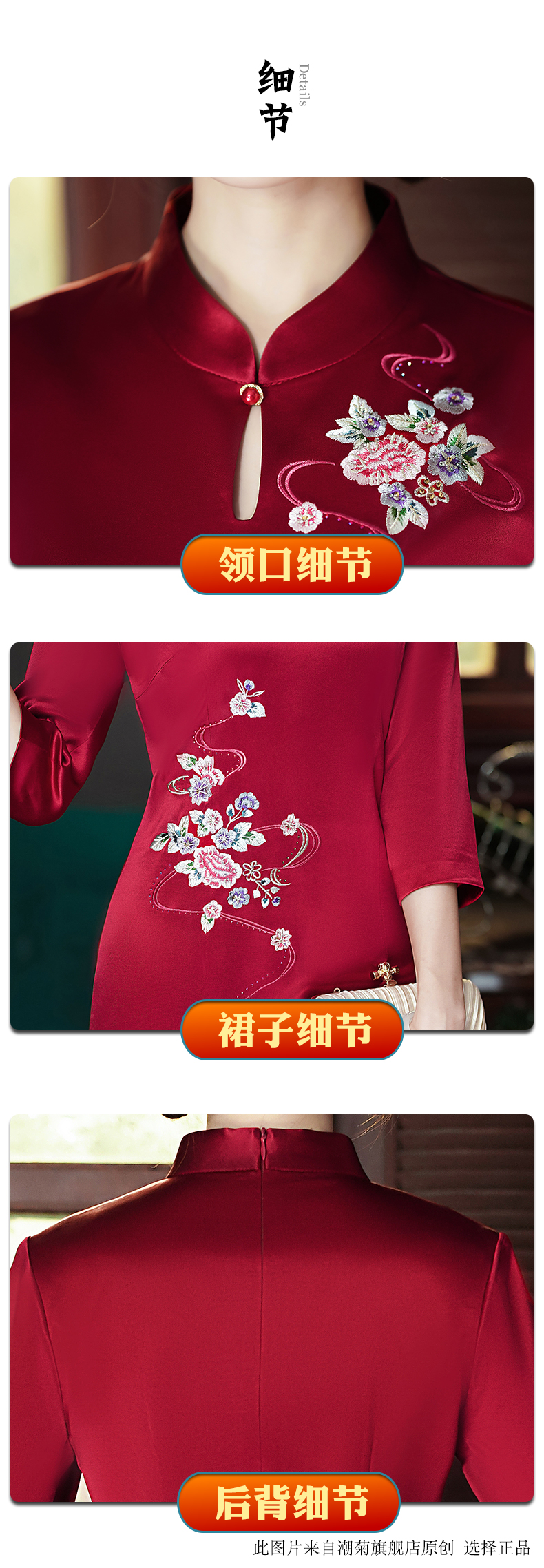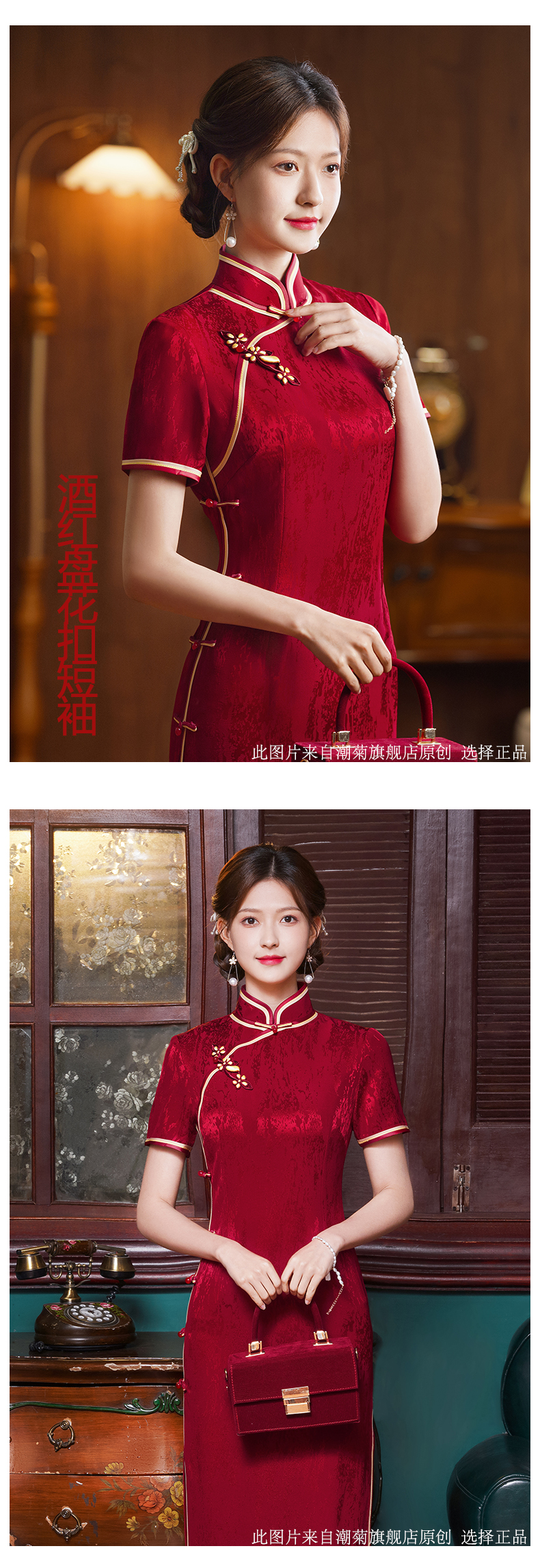 Burgundy, with embroidery;Burgundy, with embroidery, with short sleeve;Wine red water droplet collar;Burgundy, with short sleeve;Bluster red nails in the middle sleeve;Blower red butterfly love flower SMS;Peacock blue nails seven -point sleeve;Burgundy, mid length, long sleeve;Burgundy, mid length, long sleeve;Blushing Jiuzhu Flower;Blushing plate flower buckle short sleeves;Burgundy colour circle, mid length, long sleeve;Bluster red flower buckle short sleeve;Burgundy, mid length, long sleeve