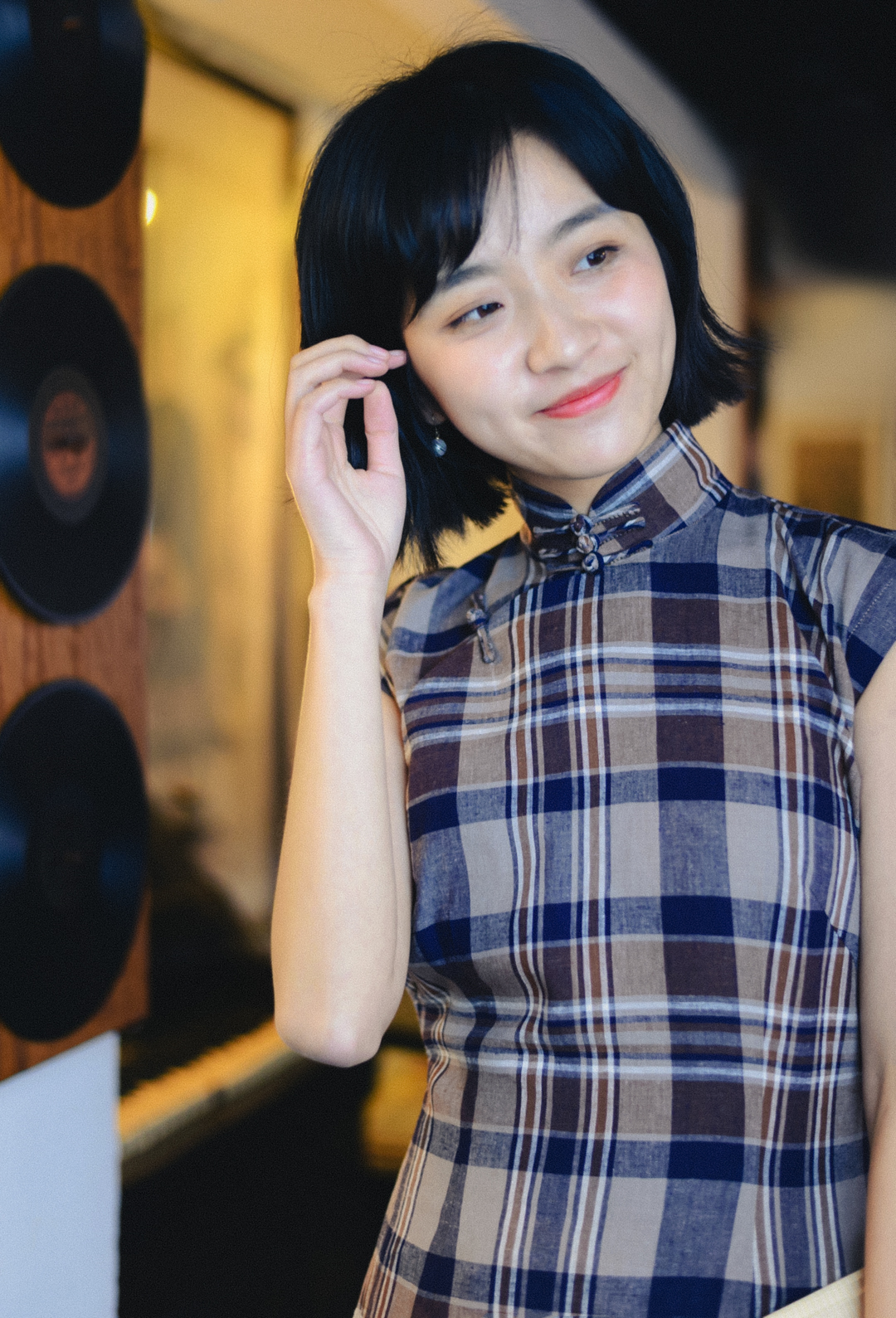 Solid fabrics, grid linen, and side zipper to make the slimming effect better.There are many types of grids in Mojia. This is a lattice of autumn. There is no question in autumn.