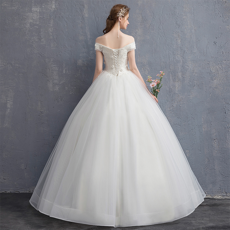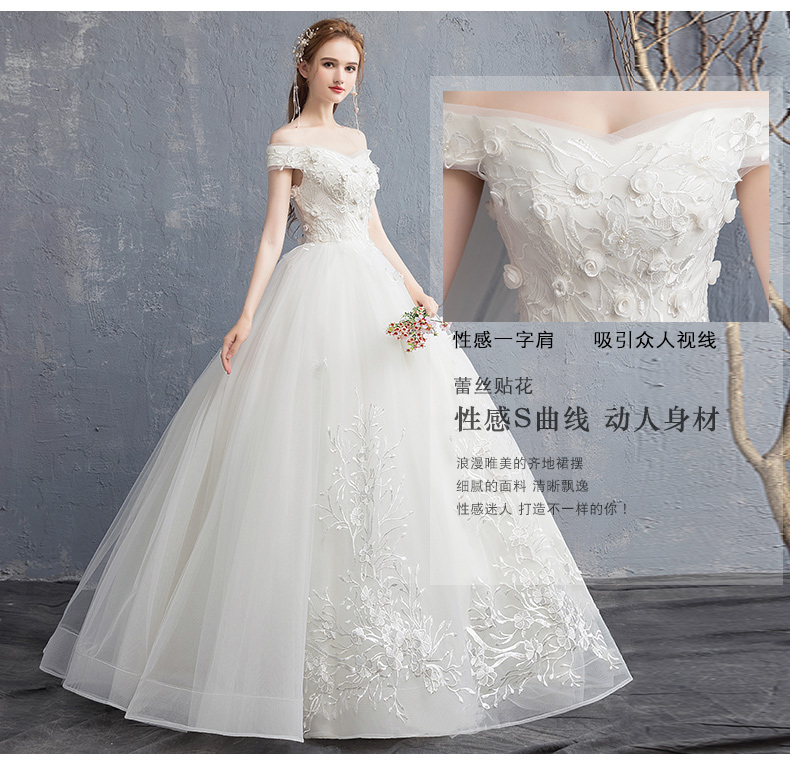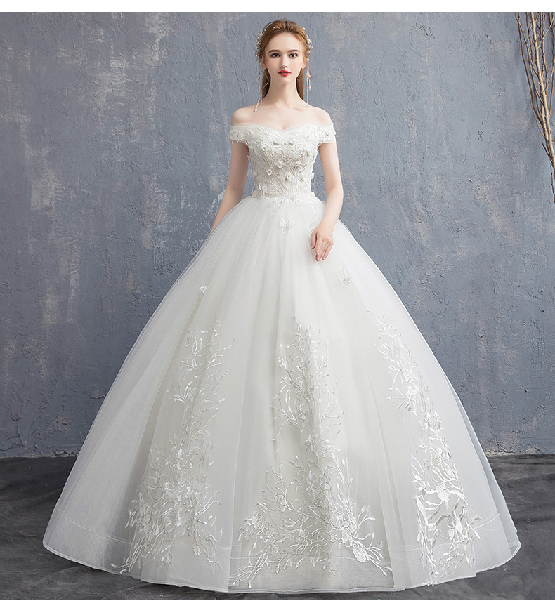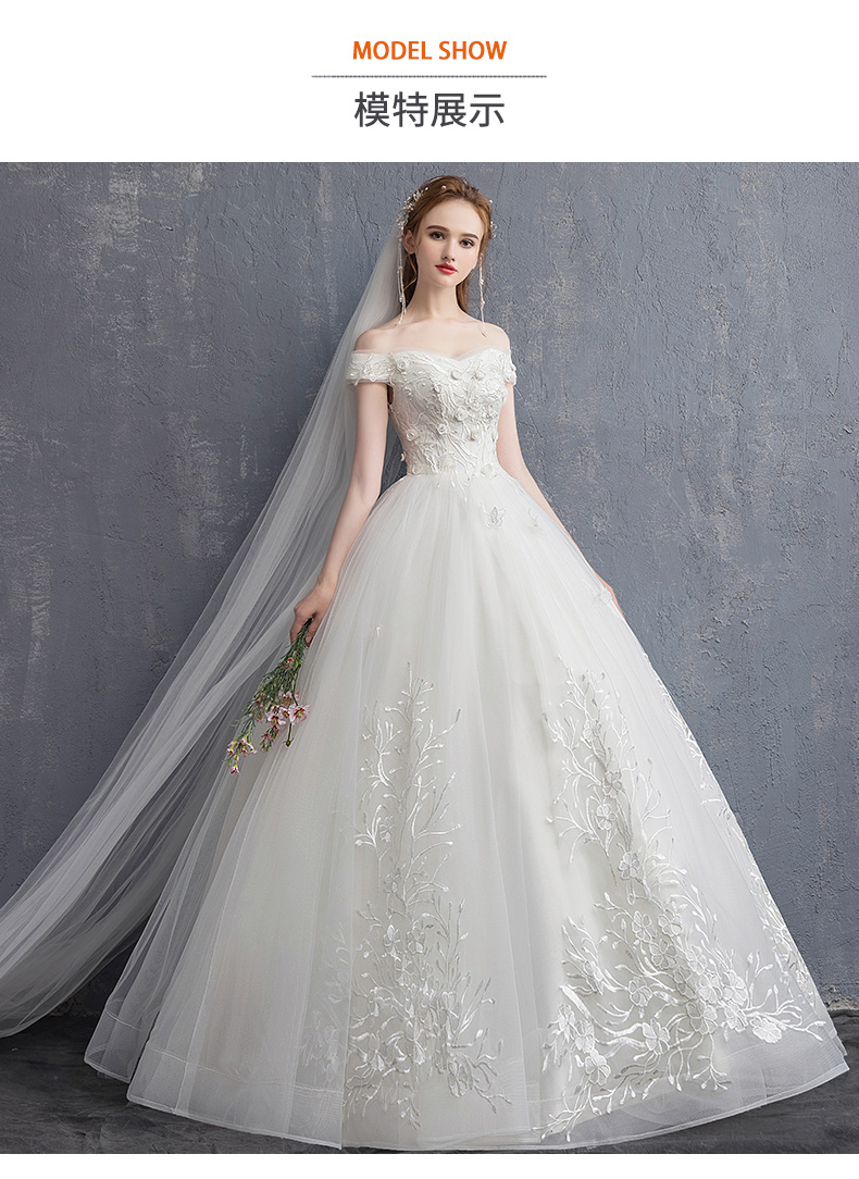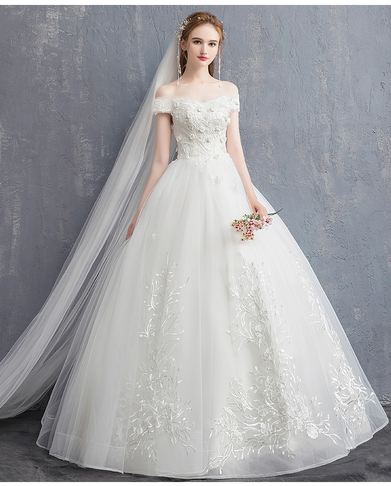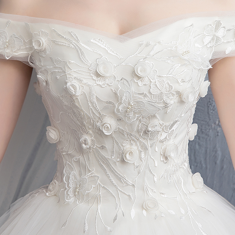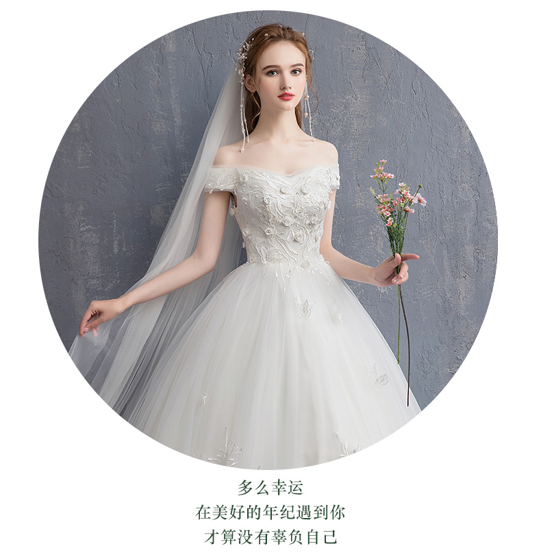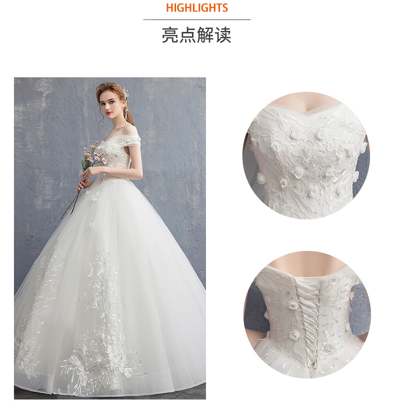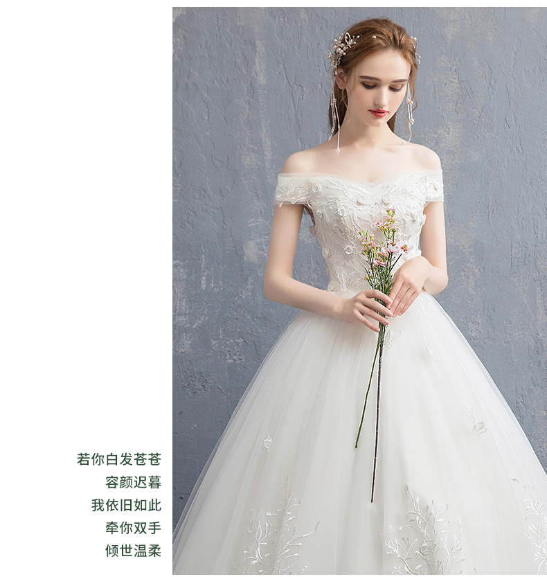 Advanced wedding dress for pregnant, open shoulders, french style, high-end