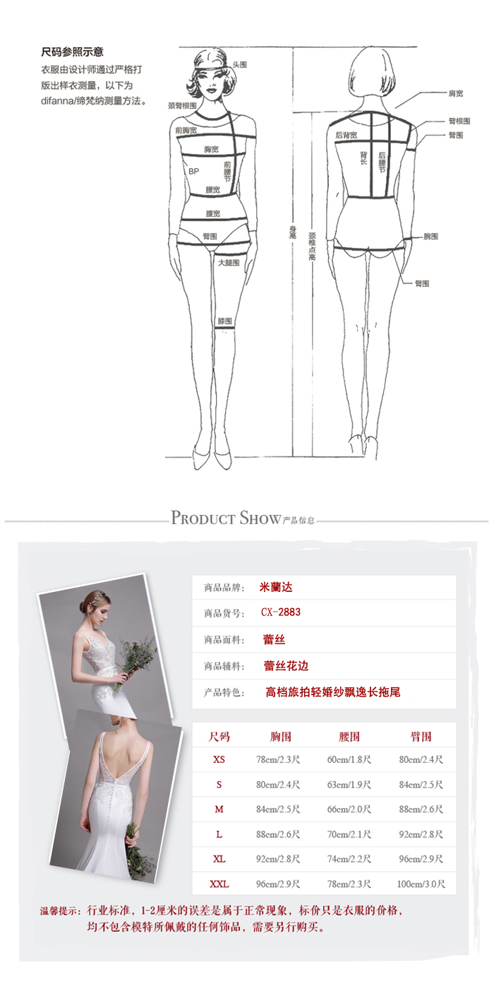尺寸表与尺量方式: