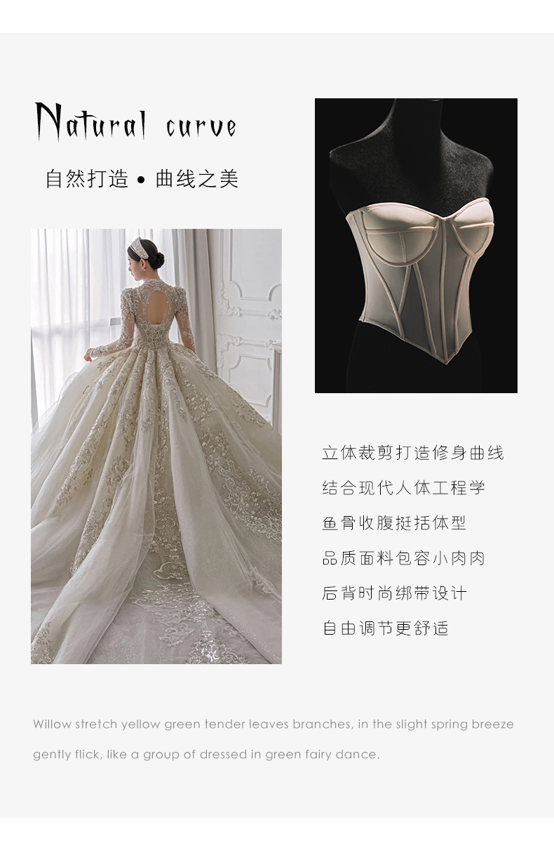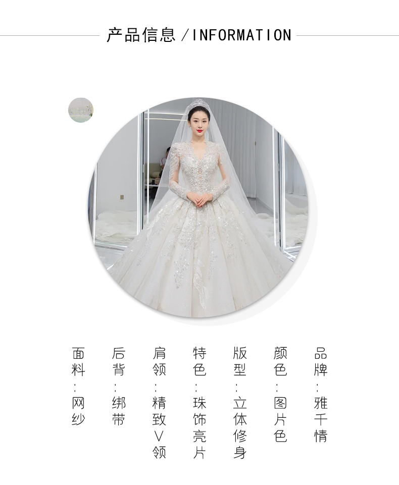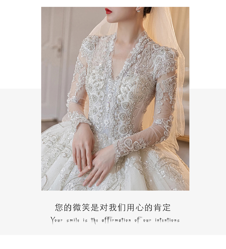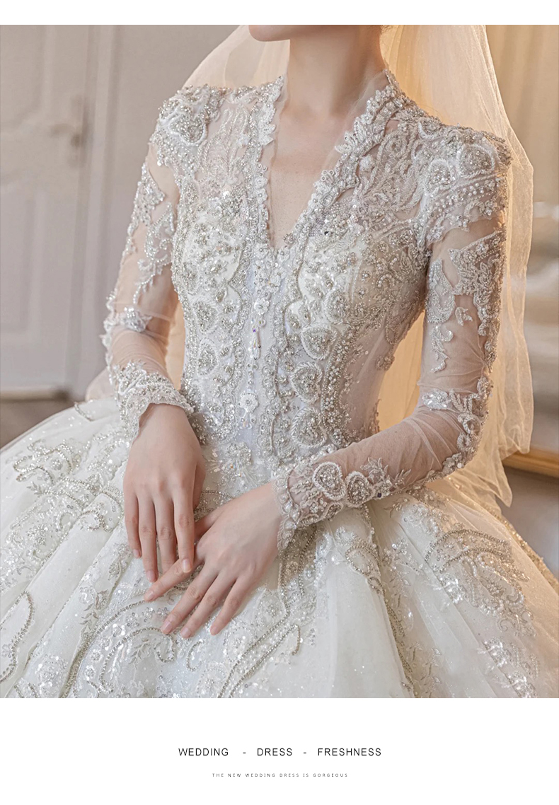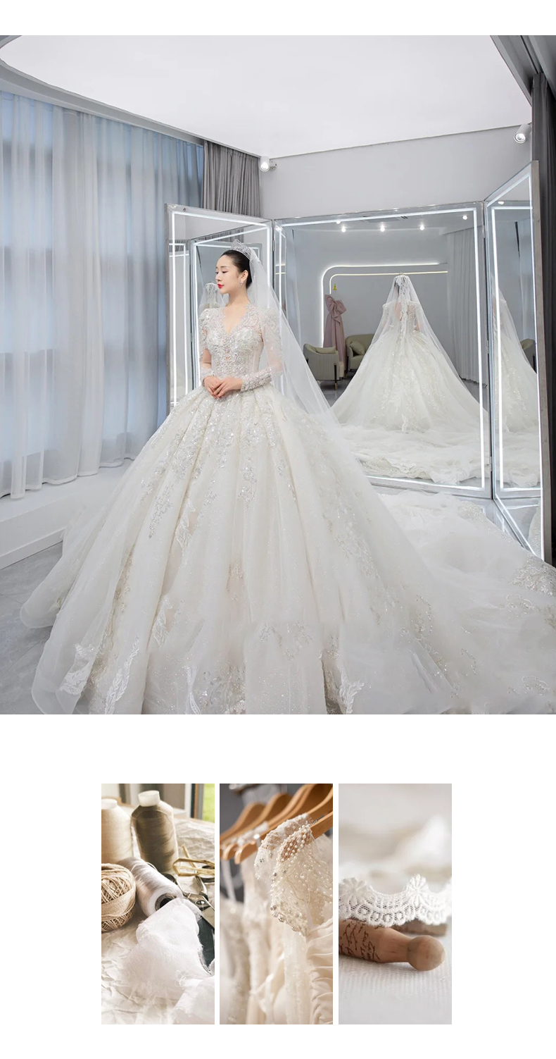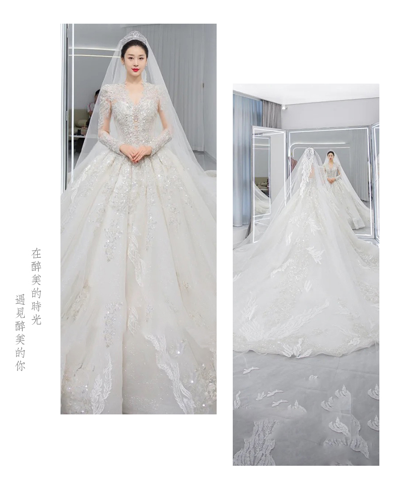 • Long -sleeved light wedding dress 2023 new bride temperament, small, high -level sensor, luxury large trailer main gauze texture