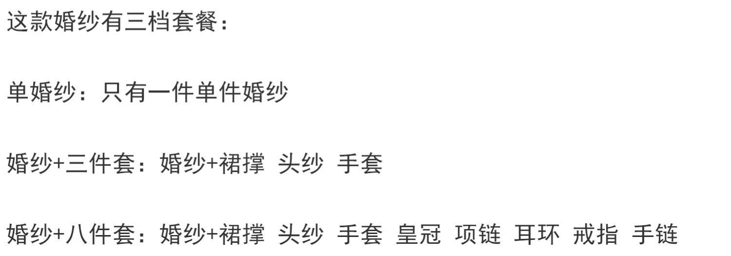 Champagne color "Single Wedding Get";Set, champagne color, 3 piece set;Champagne color "Wedding+Eight -piece Set";White "Single Wedding Get";White set, 3 piece set;White "Wedding+Eight -piece Set"