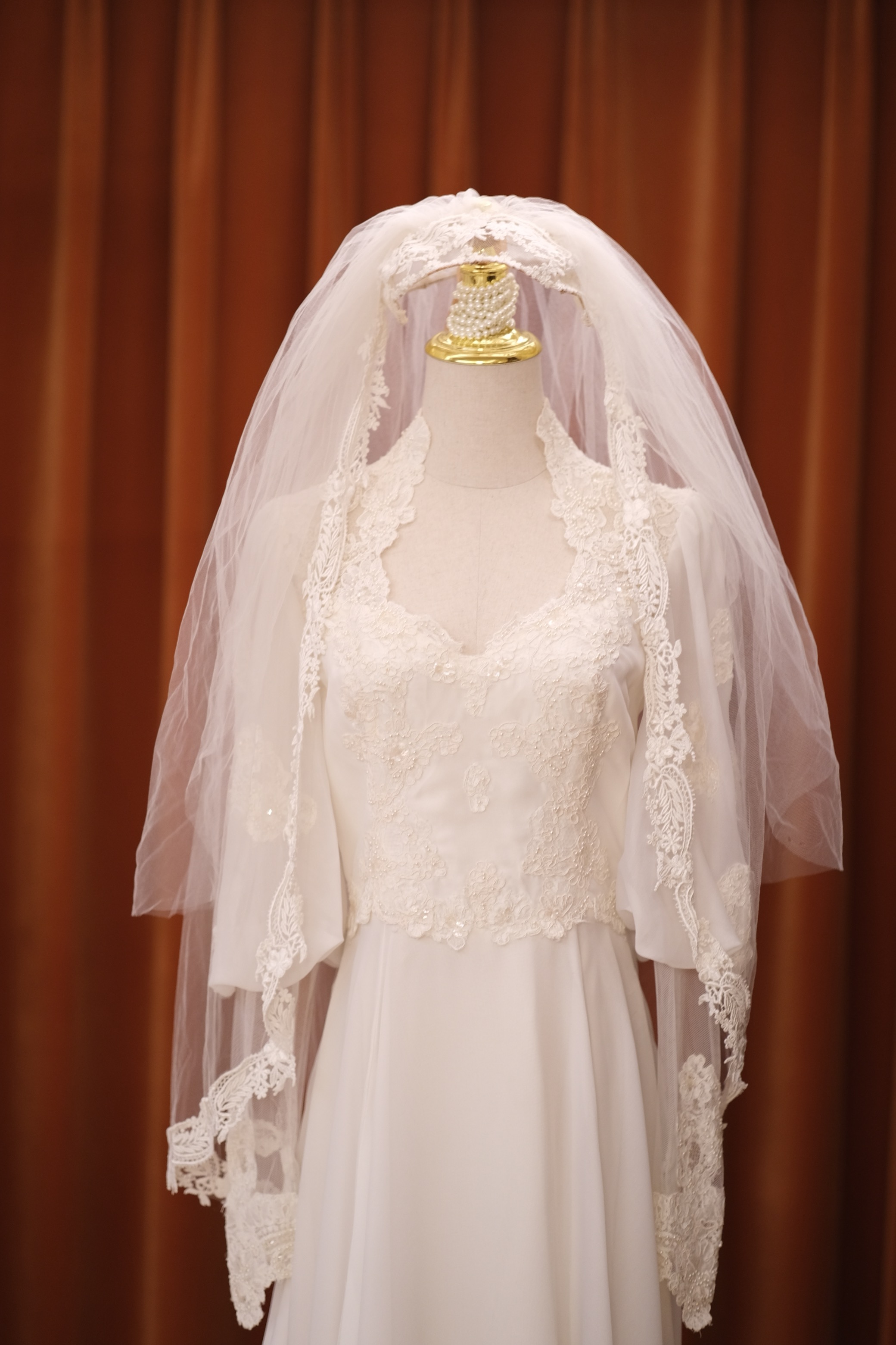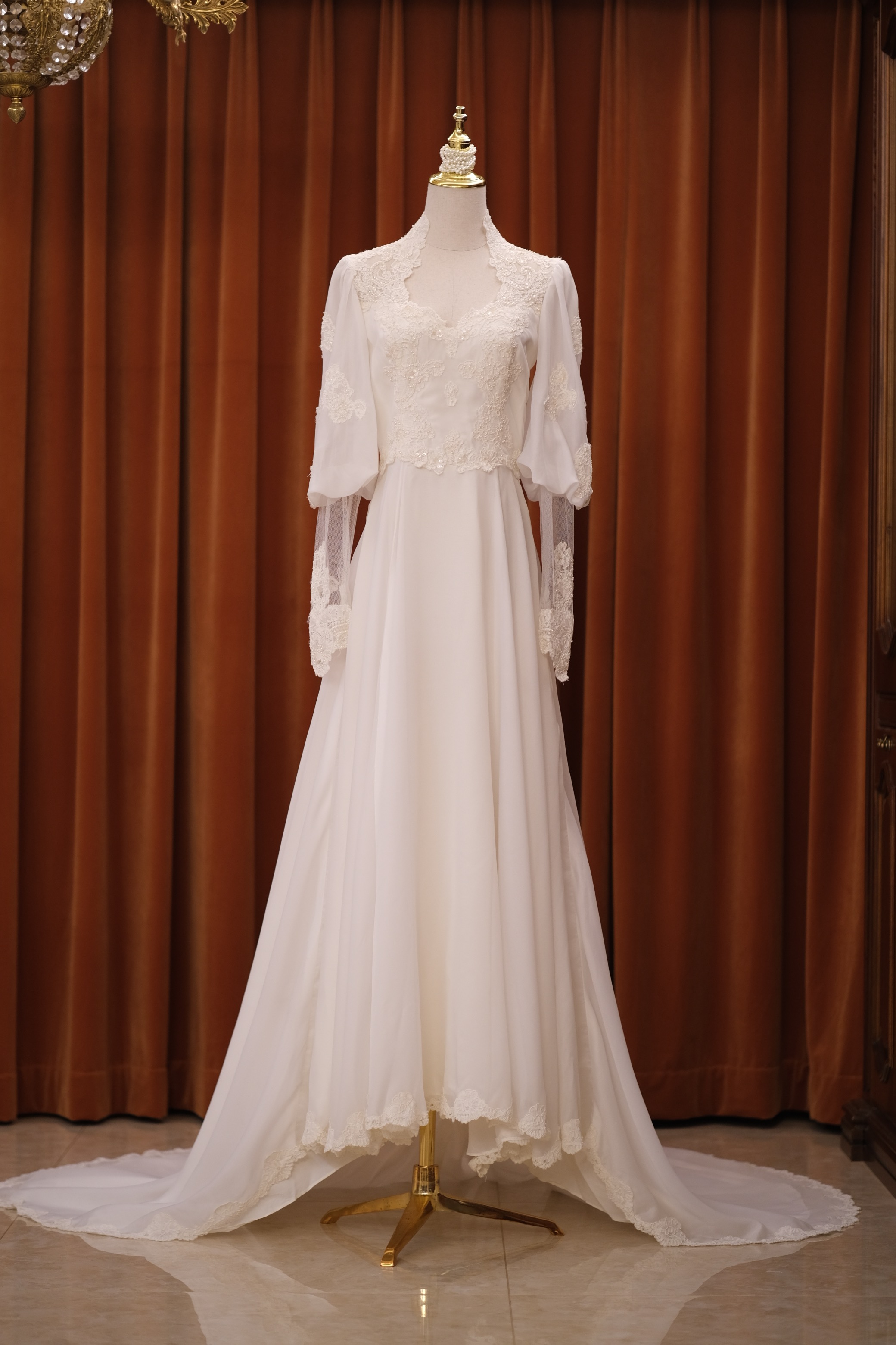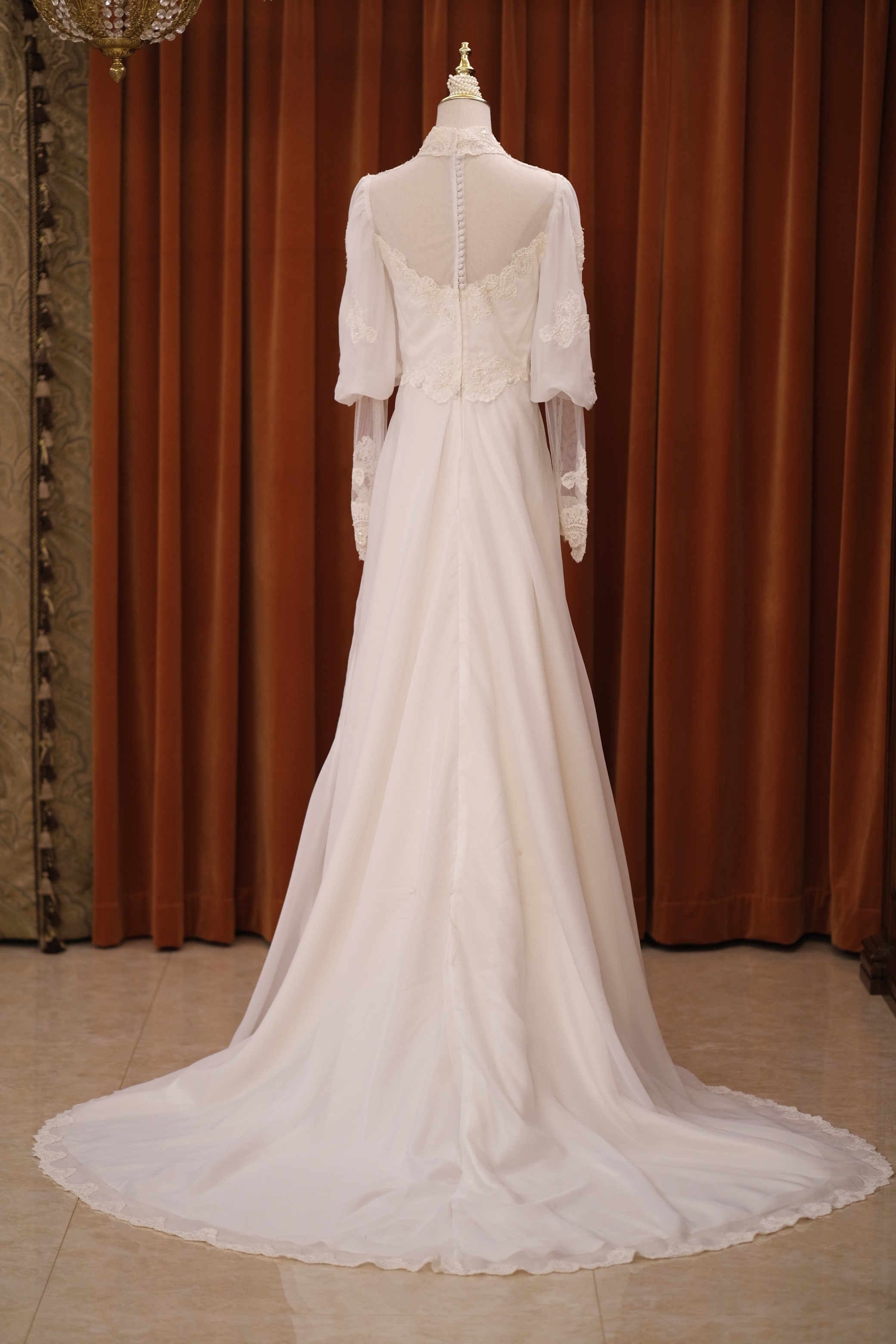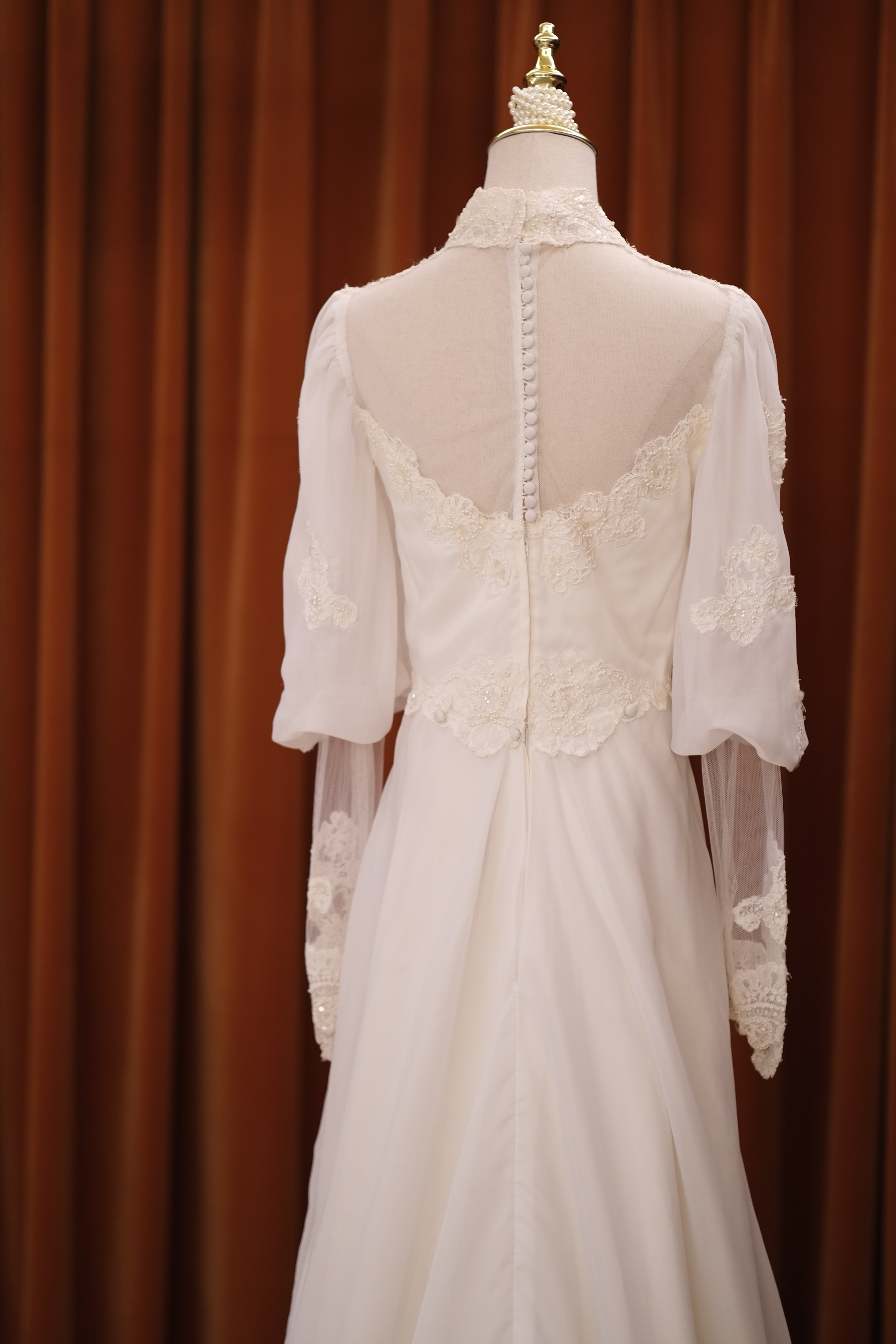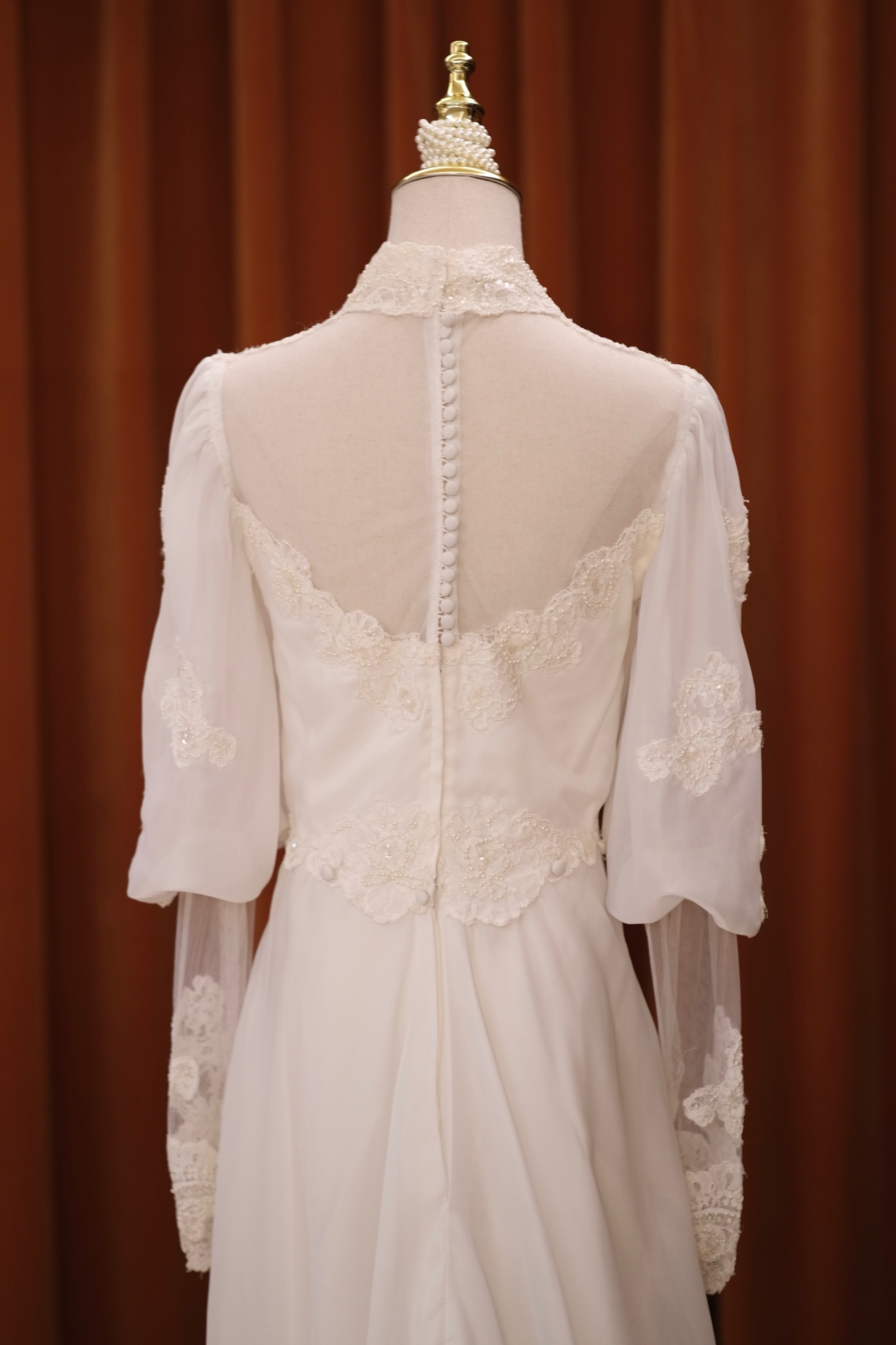 60S pearl petal lace temperament classical Victorian antique wedding dress