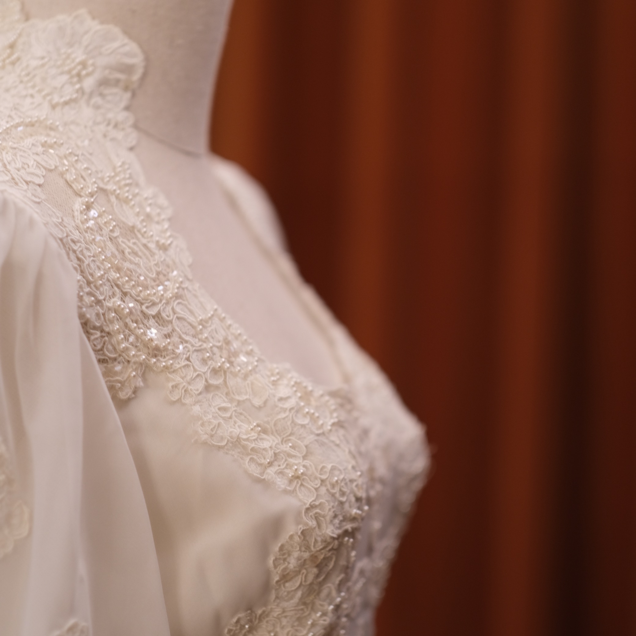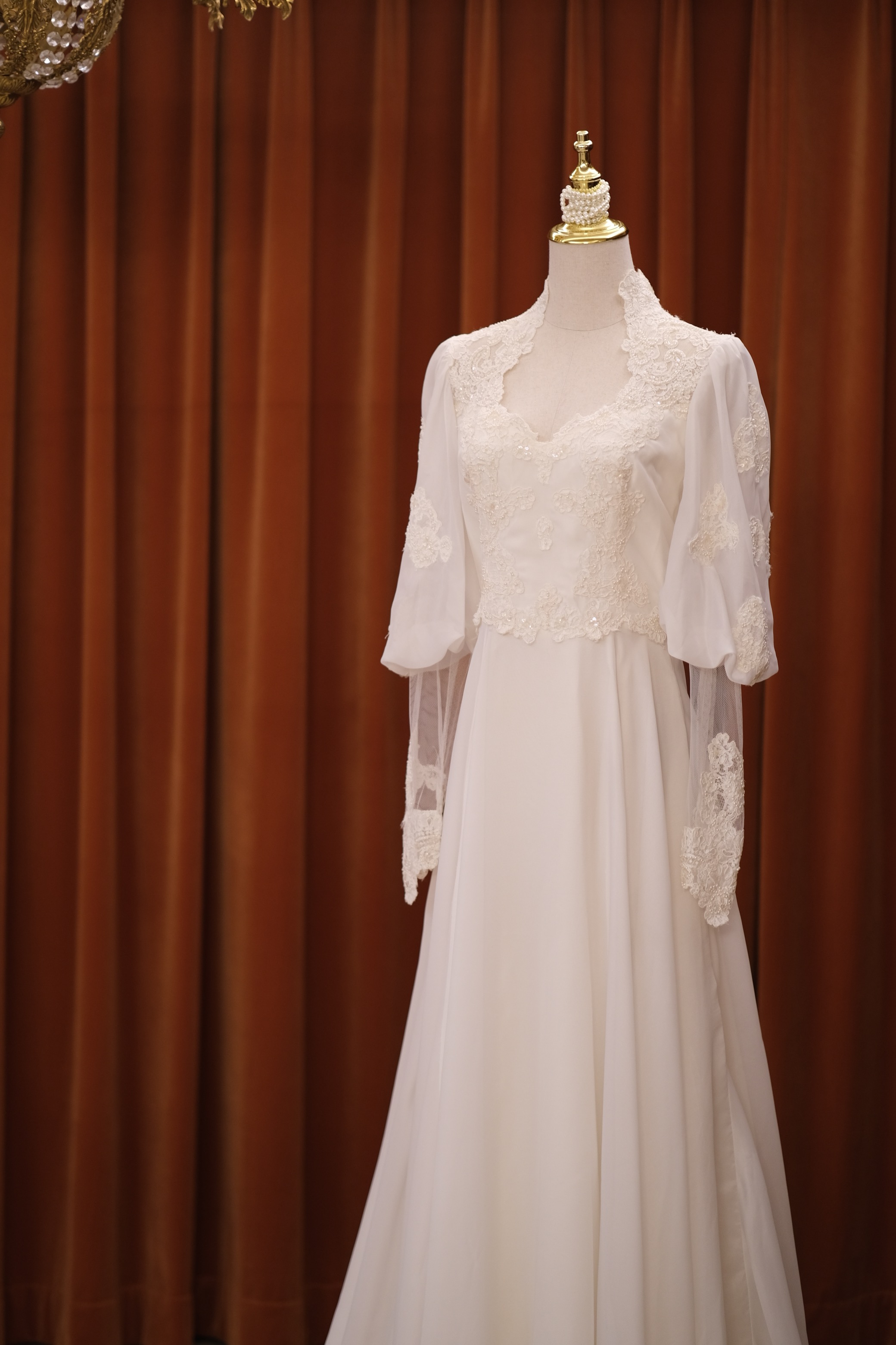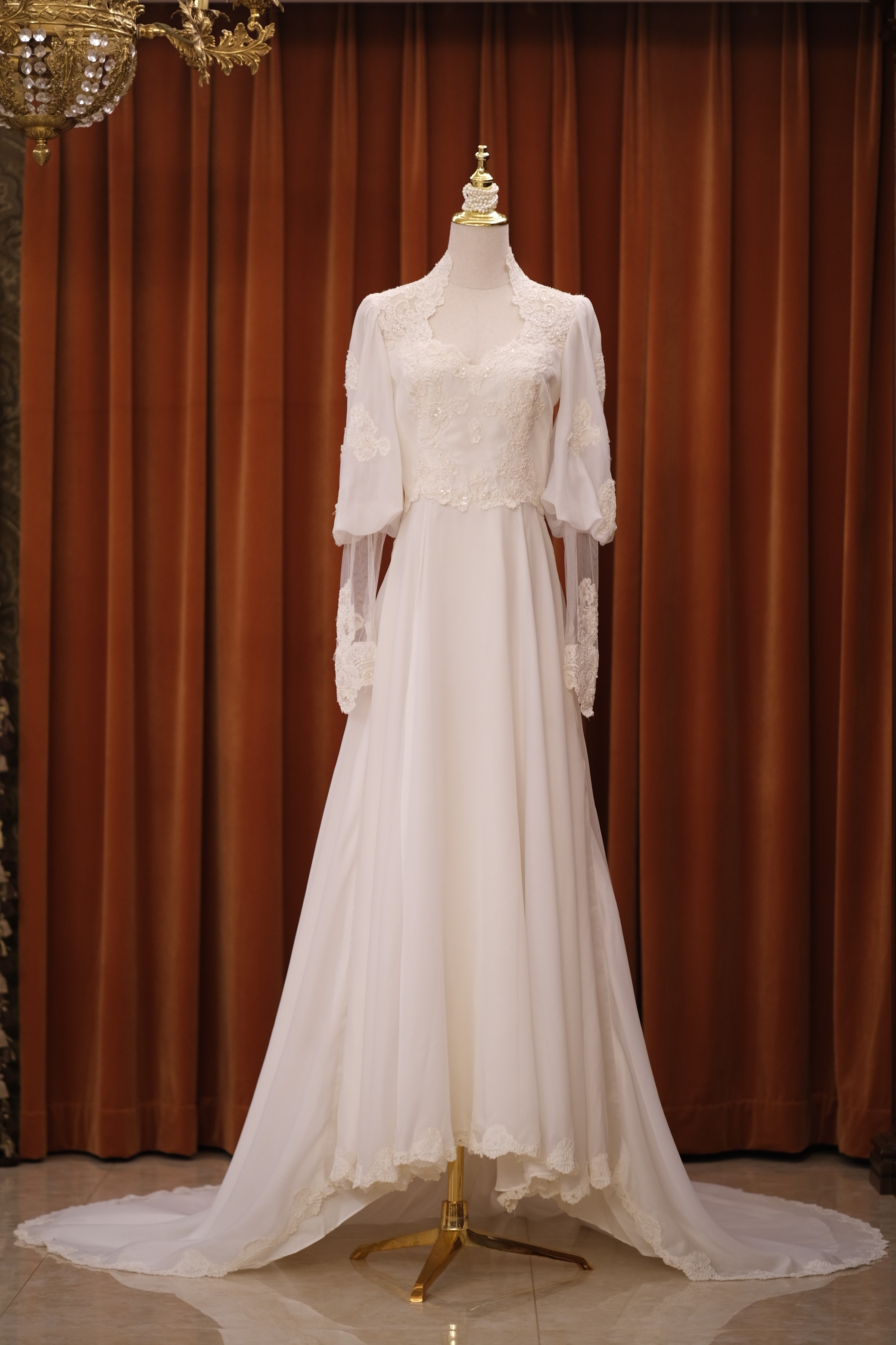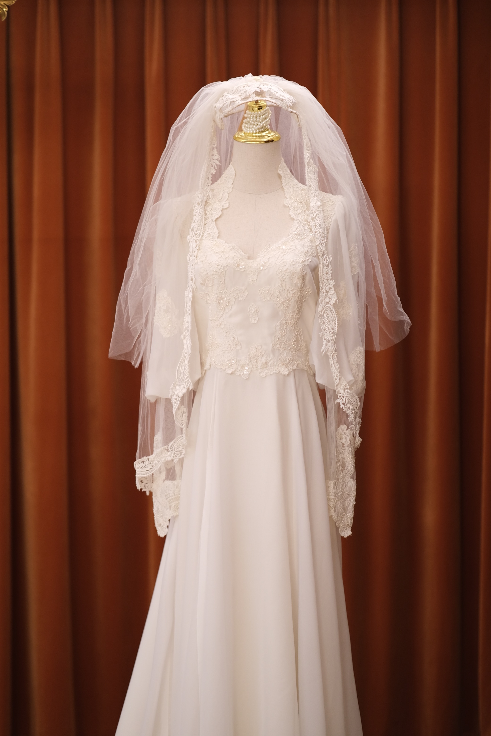 60S pearl petal lace temperament classical Victorian antique wedding dress