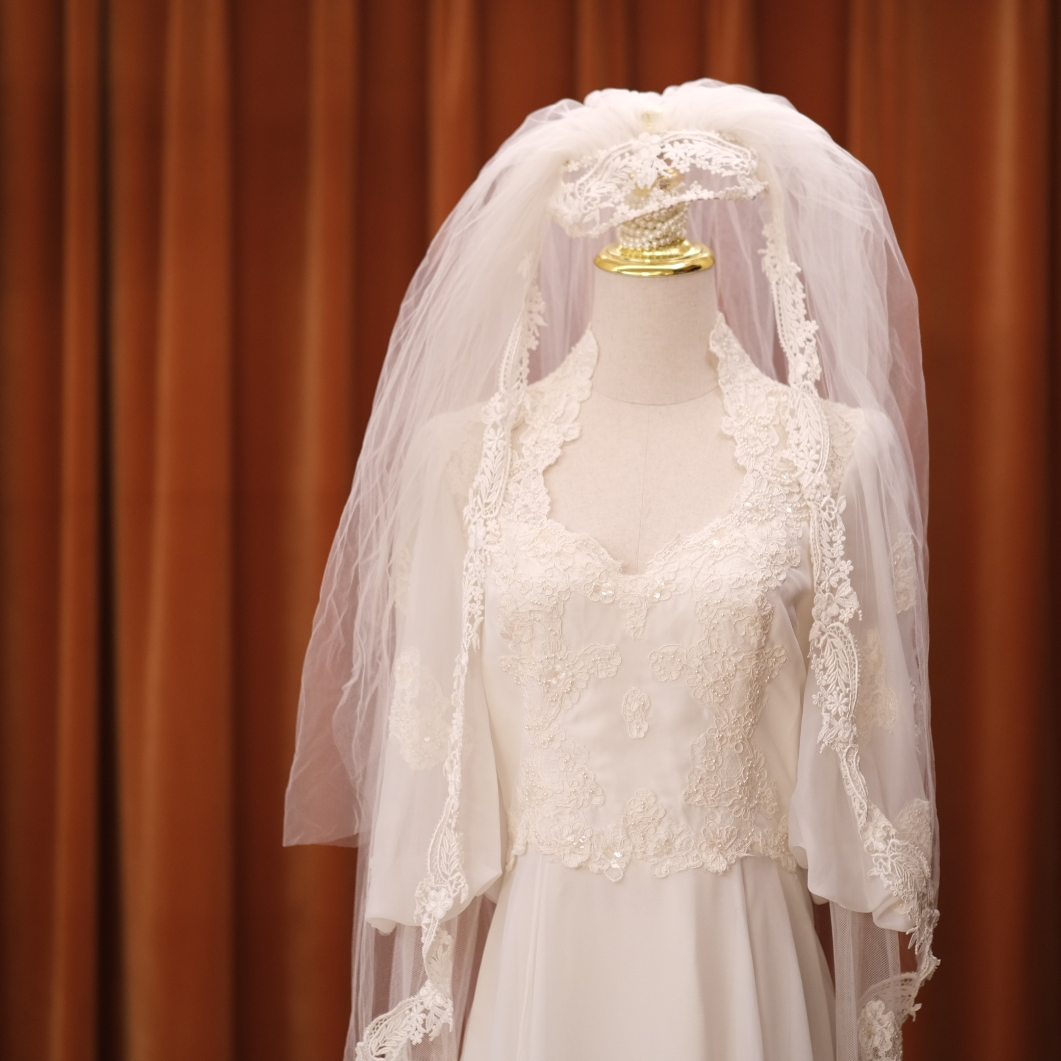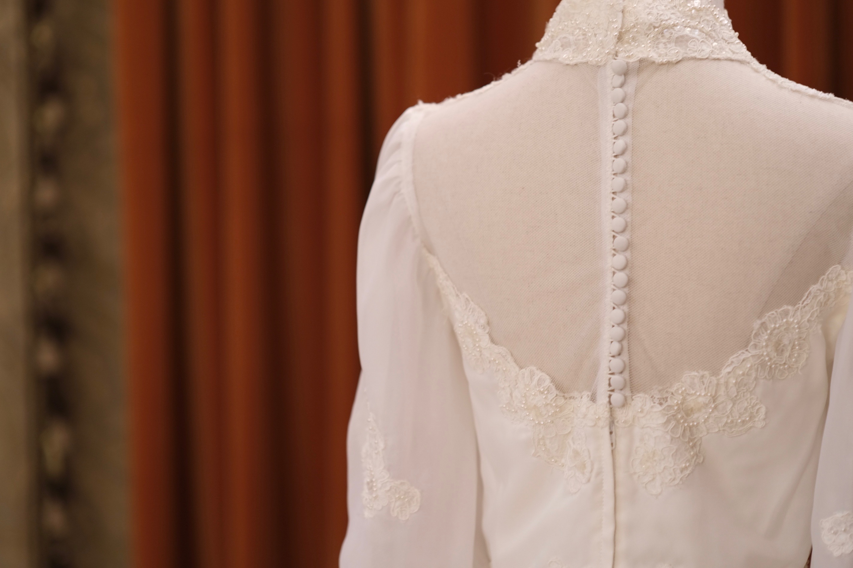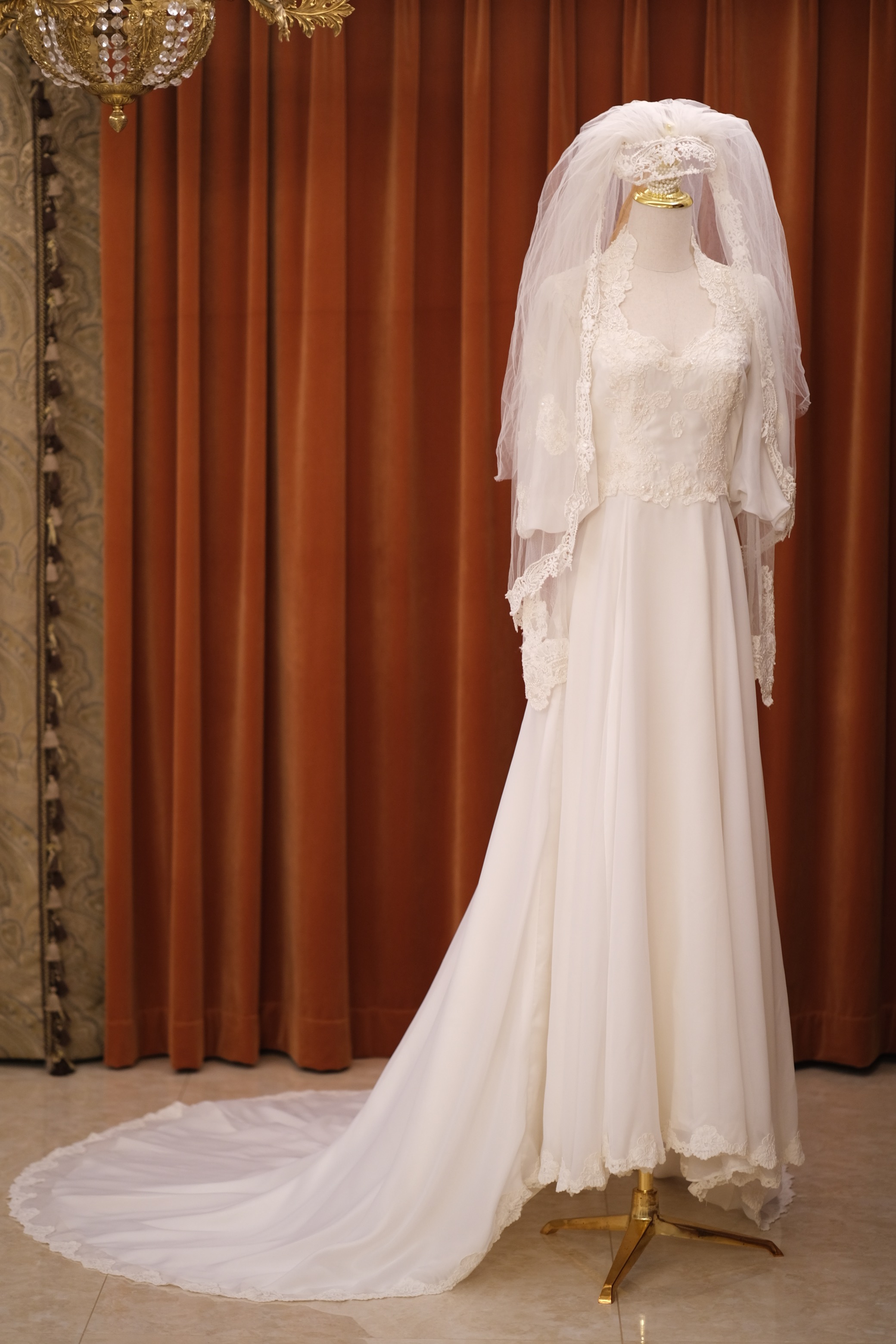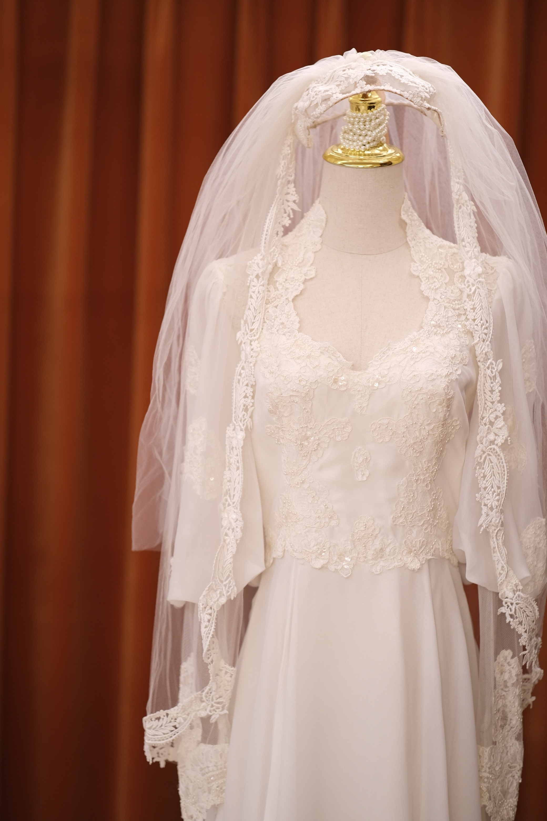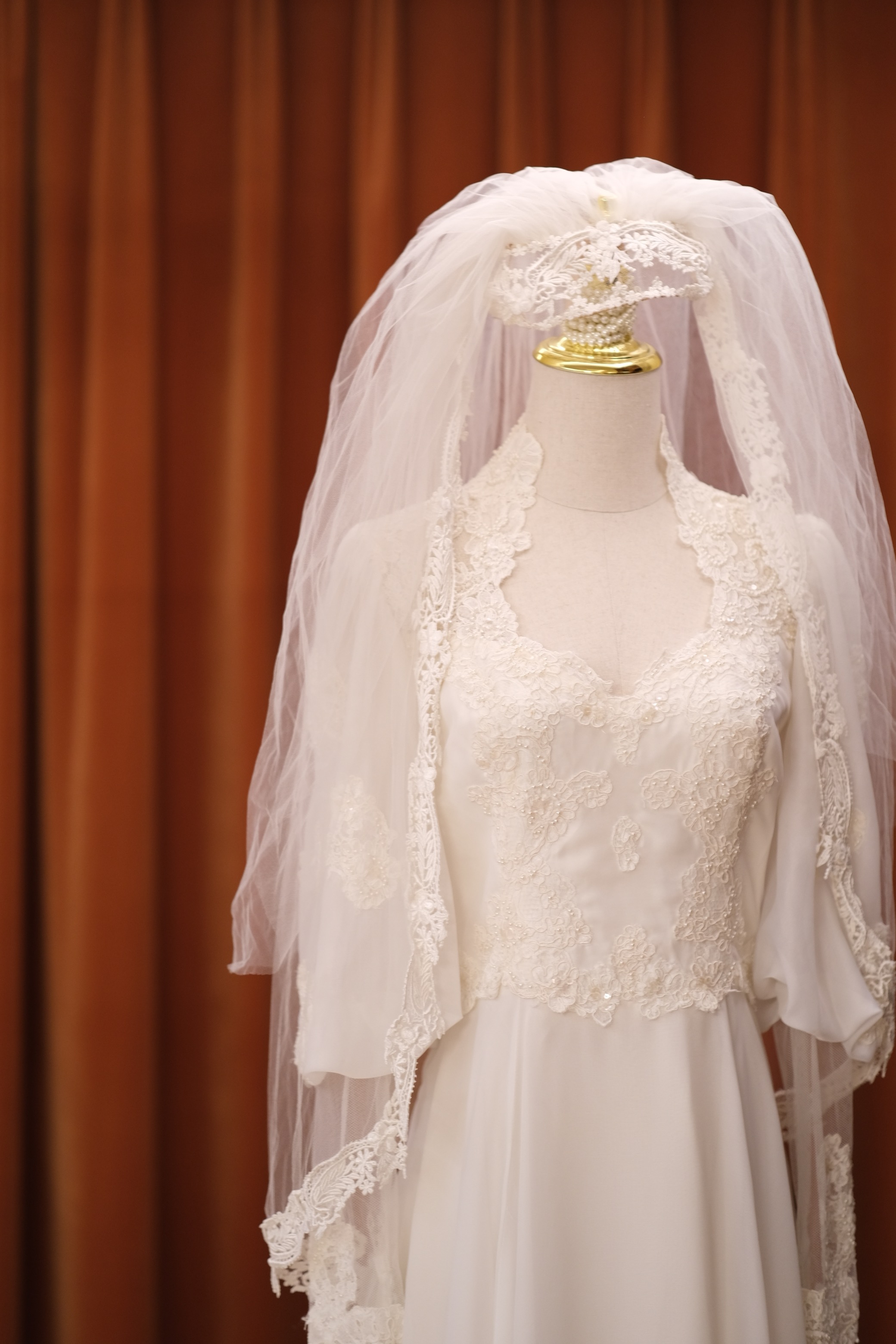 60S pearl petal lace temperament classical Victorian antique wedding dress