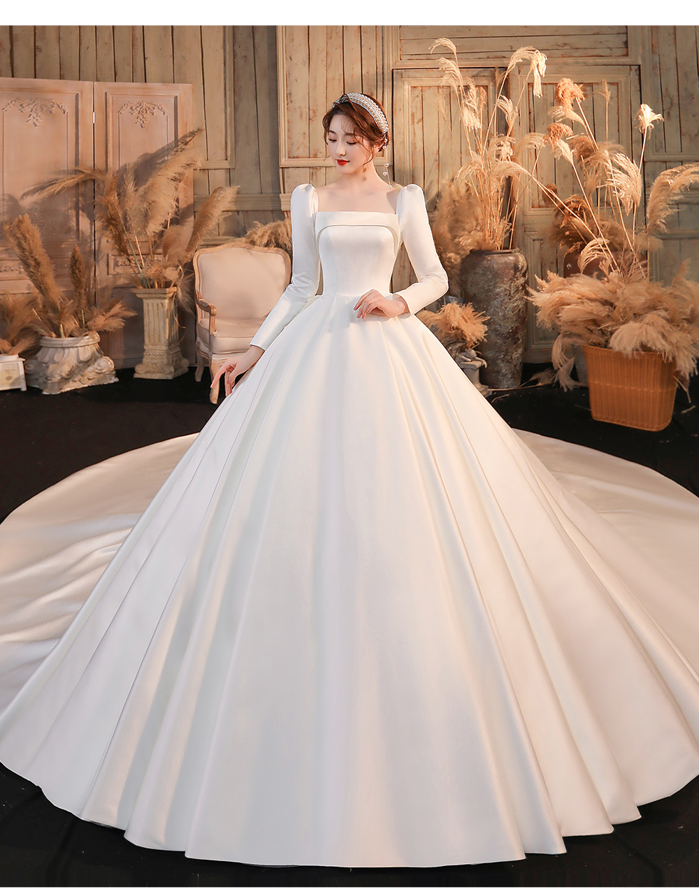 - Color: Ivory;Ivory white tail;Ivory Bai Qi+Headgear Three -piece Set;Ivory white trailer+headgear three -piece set;Ivory white+hair shawl;Ivory white trailer+hair shawl