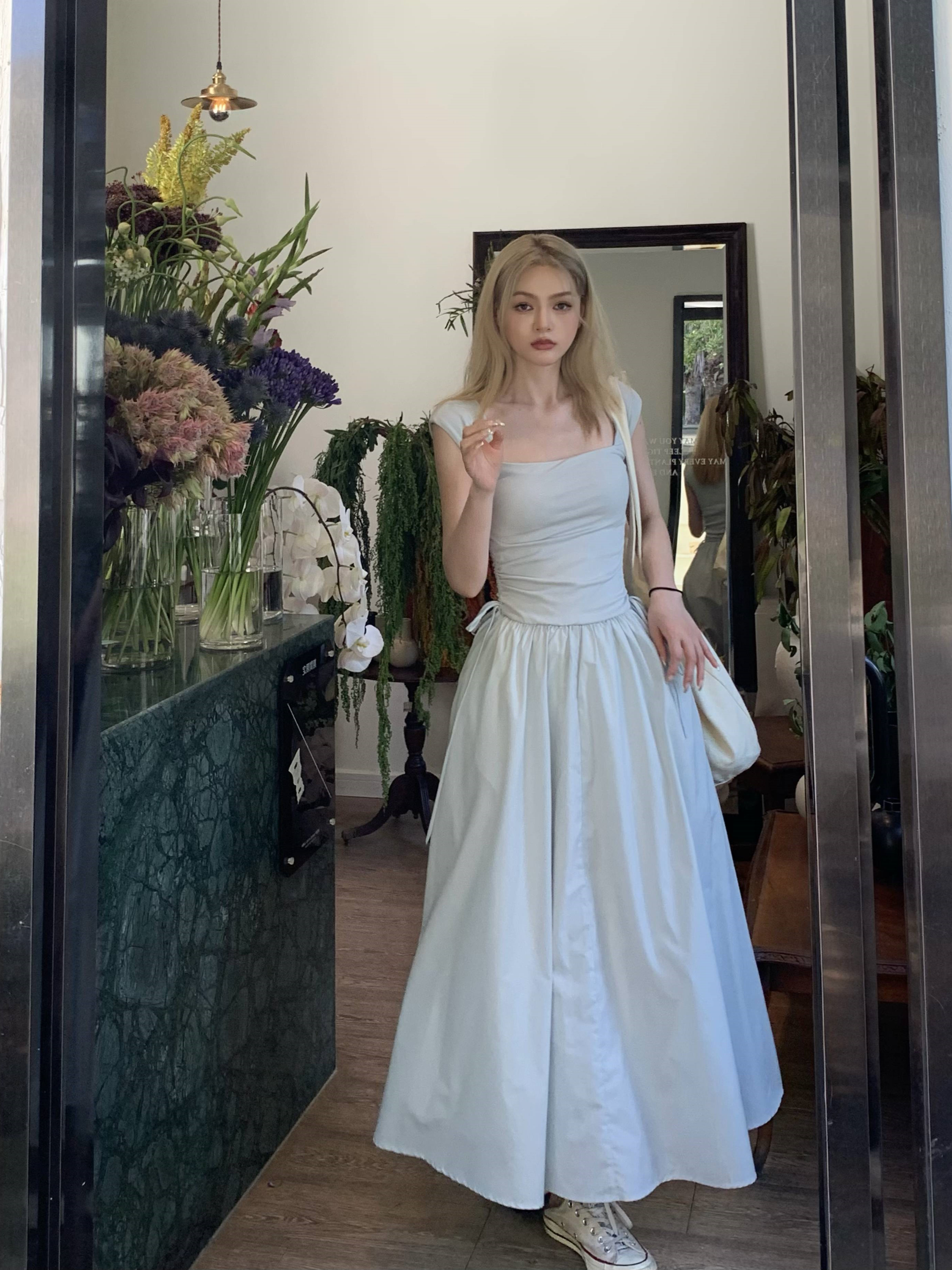- Color: Gray -blue waist sleeveless;White brace