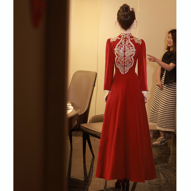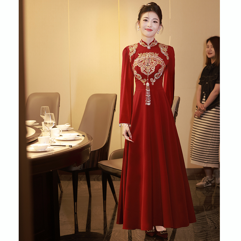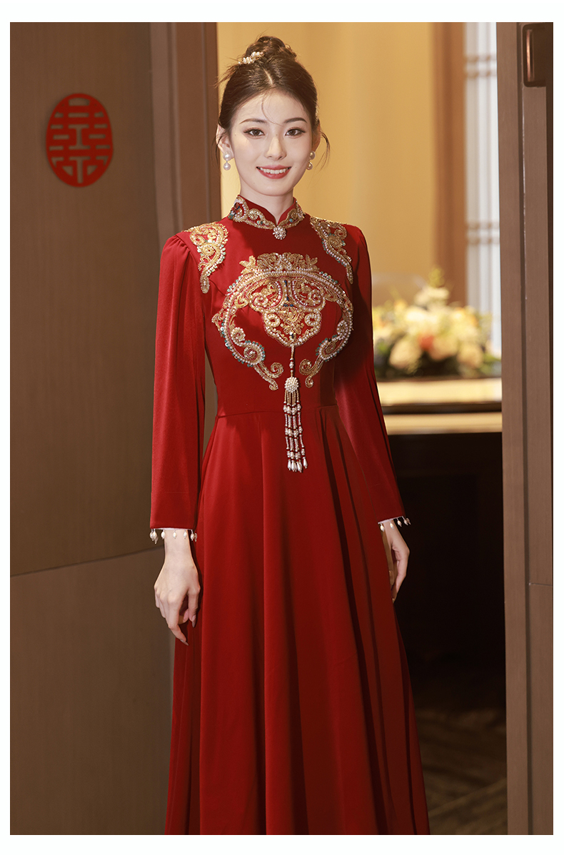 - Color: Burgundy, long, long sleeve;Burgundy, long, mid-length, with short sleeve