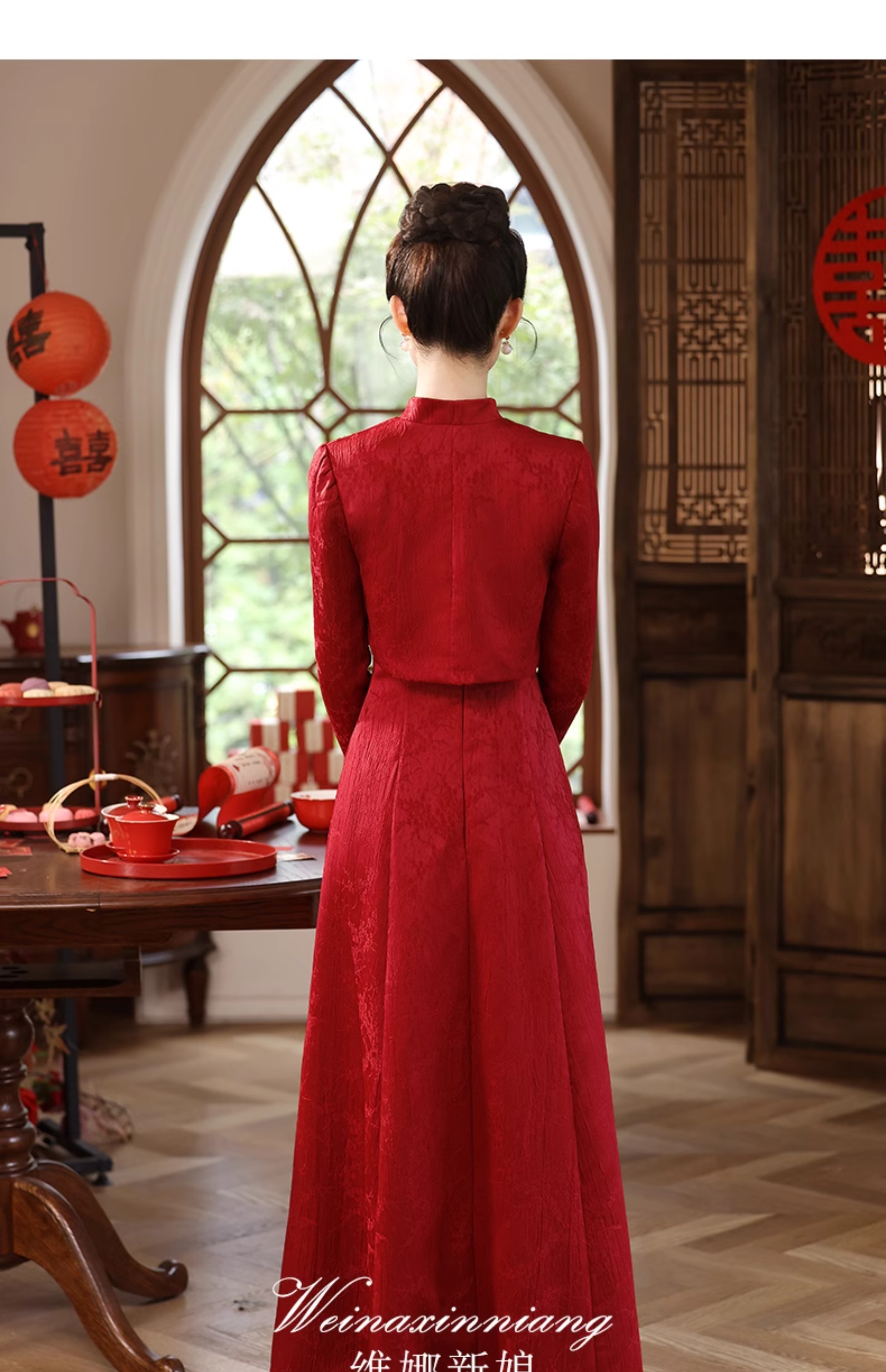 - Color: Wine red W21399;Burgundy set, long sleeve