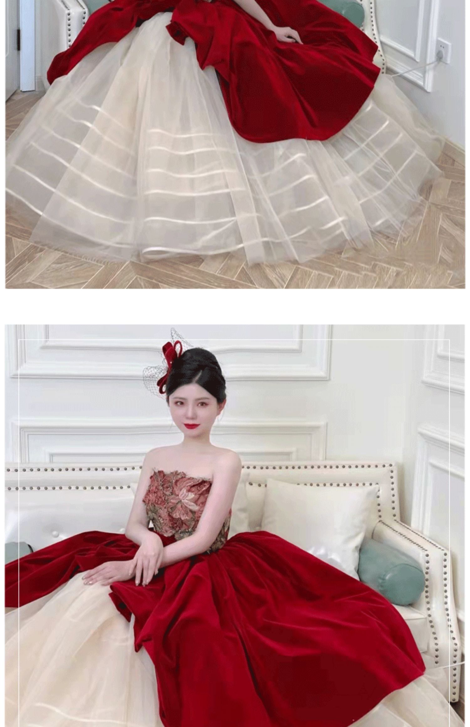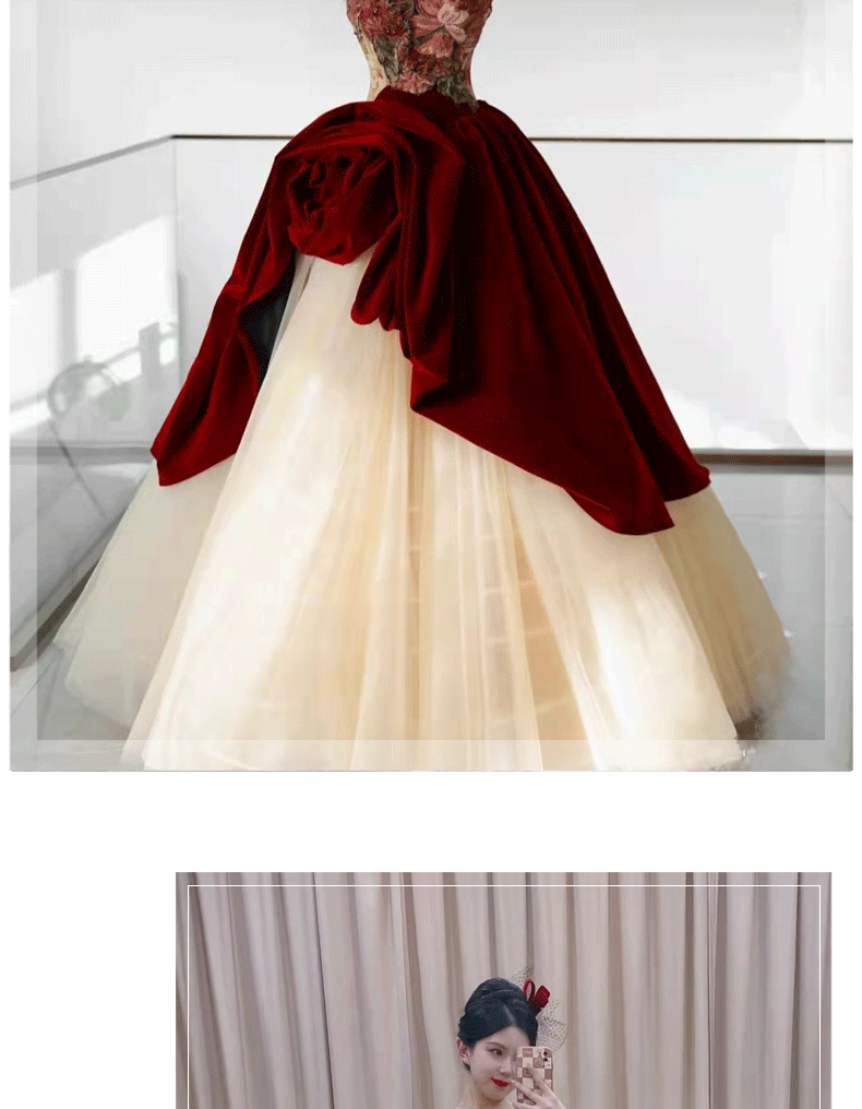 - Color: Bluster red collection plus purchase preferred delivery;Burgundy gloves, open shoulders