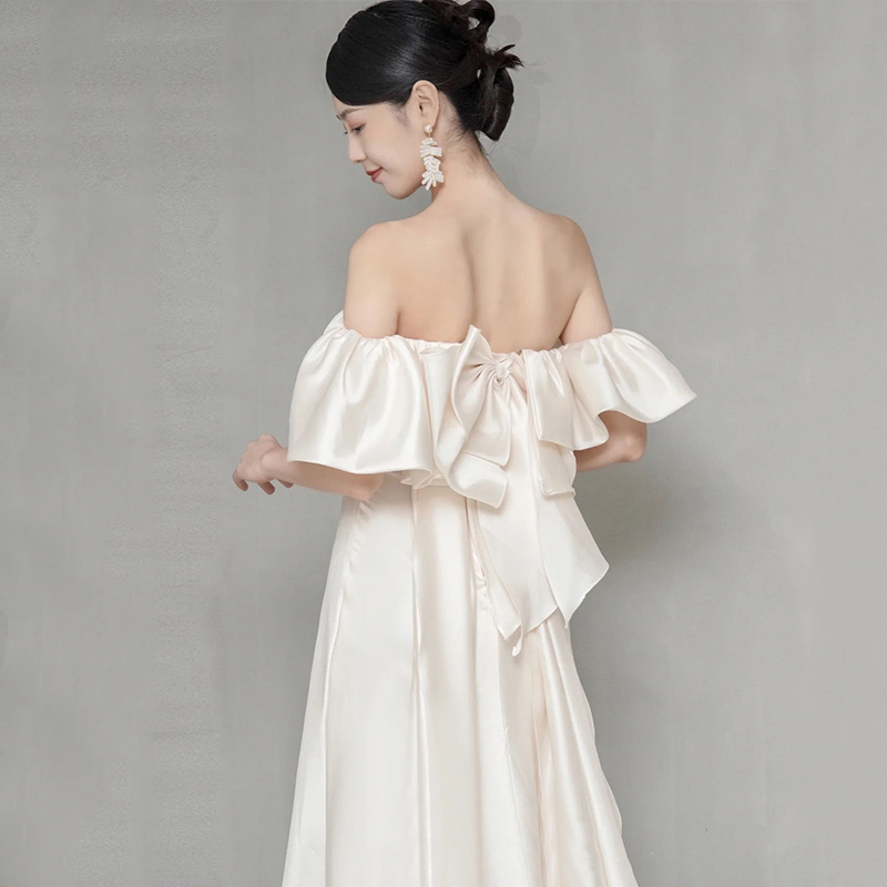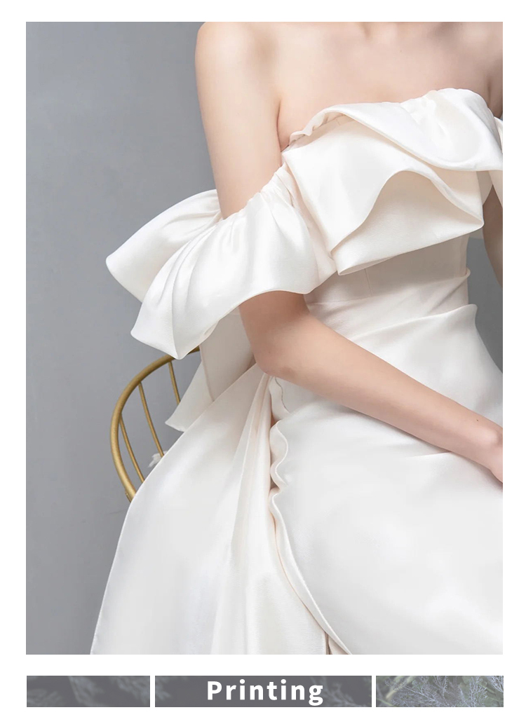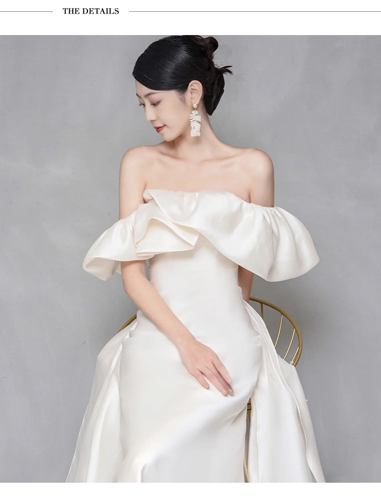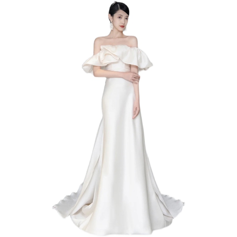 • Wedding dress for bride, open shoulders, bright catchy style, fitted, lace dress