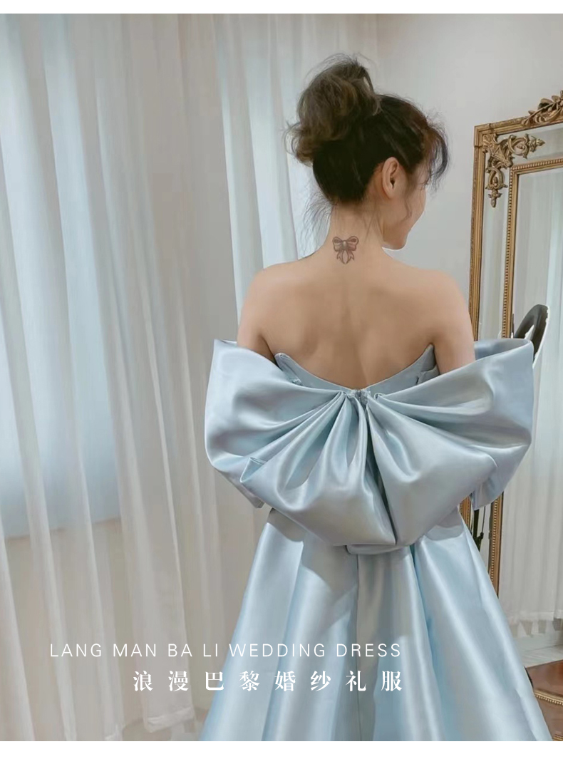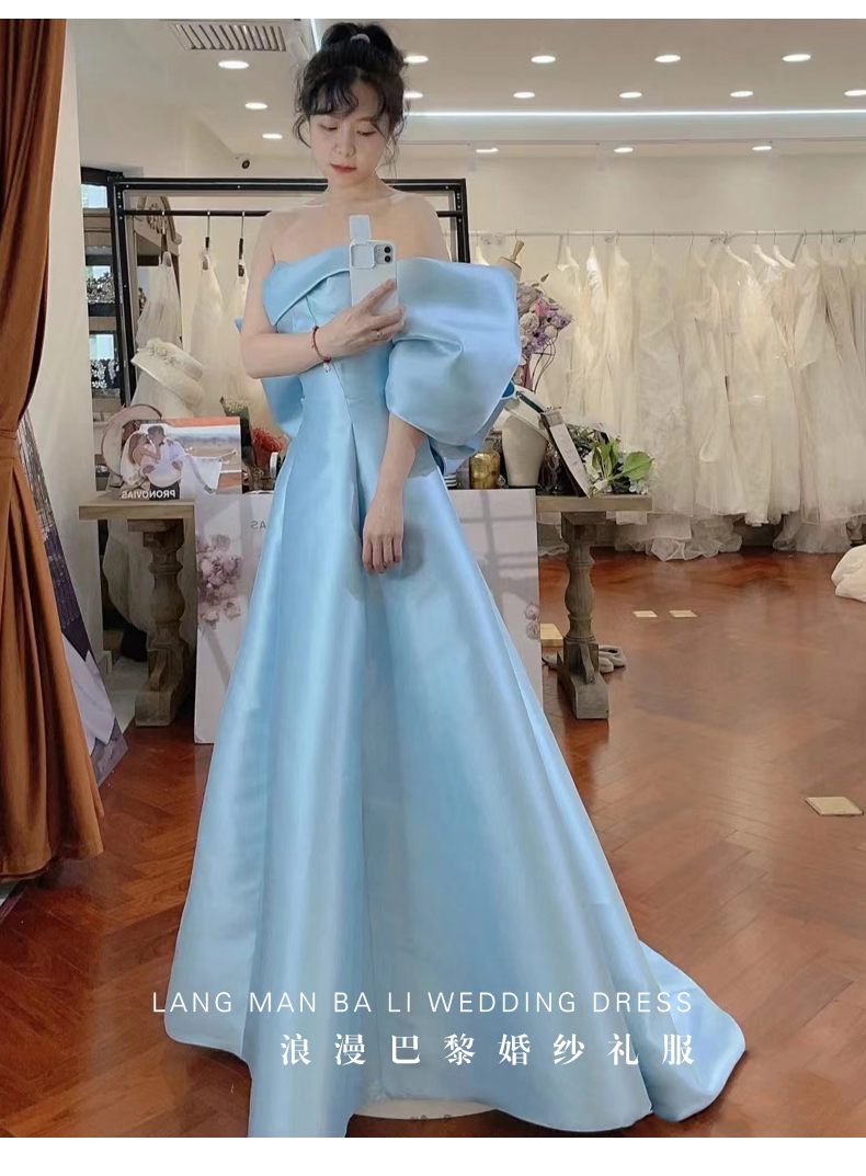 - Color: Light blue imported satin physical quality