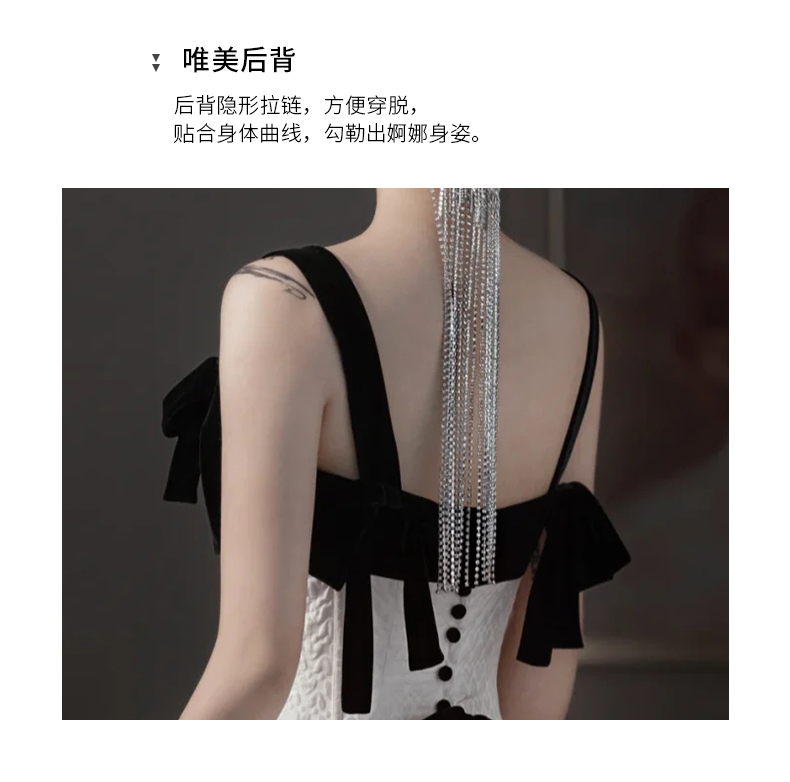 - Color: Black and white double color (tie tie);Black and white double color (shoulder strap zipper)
