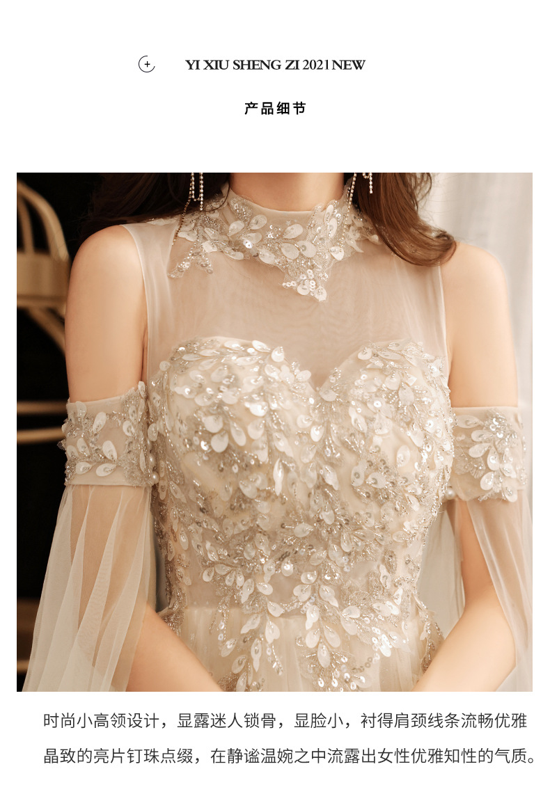 Moderator Evening Dress 2022 New Spring Champagne Banquet Temperament Extraction Scholars Music Dress Heavy Works