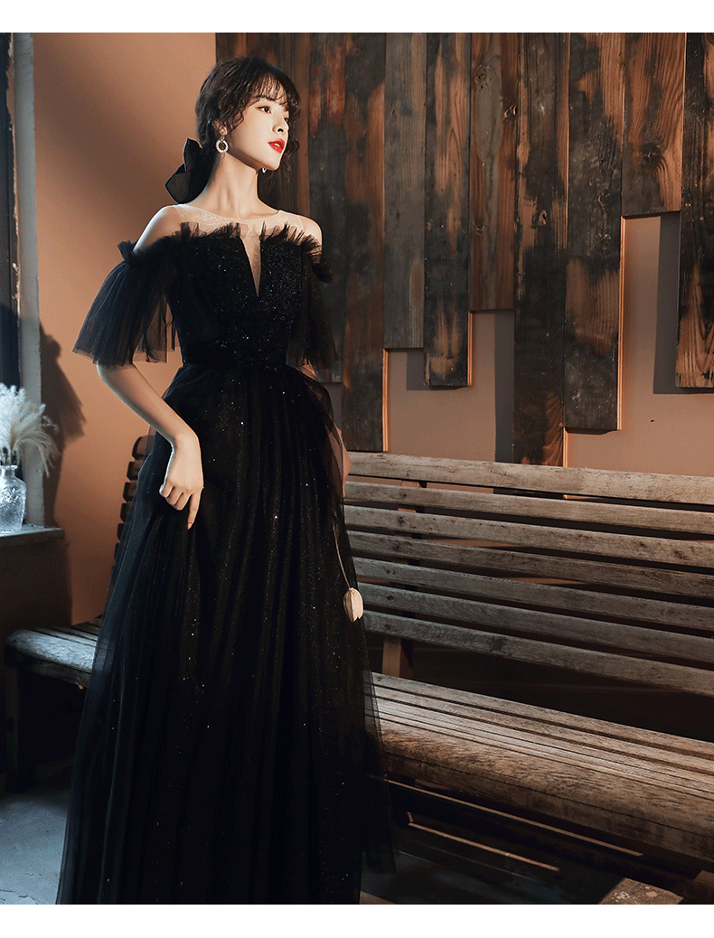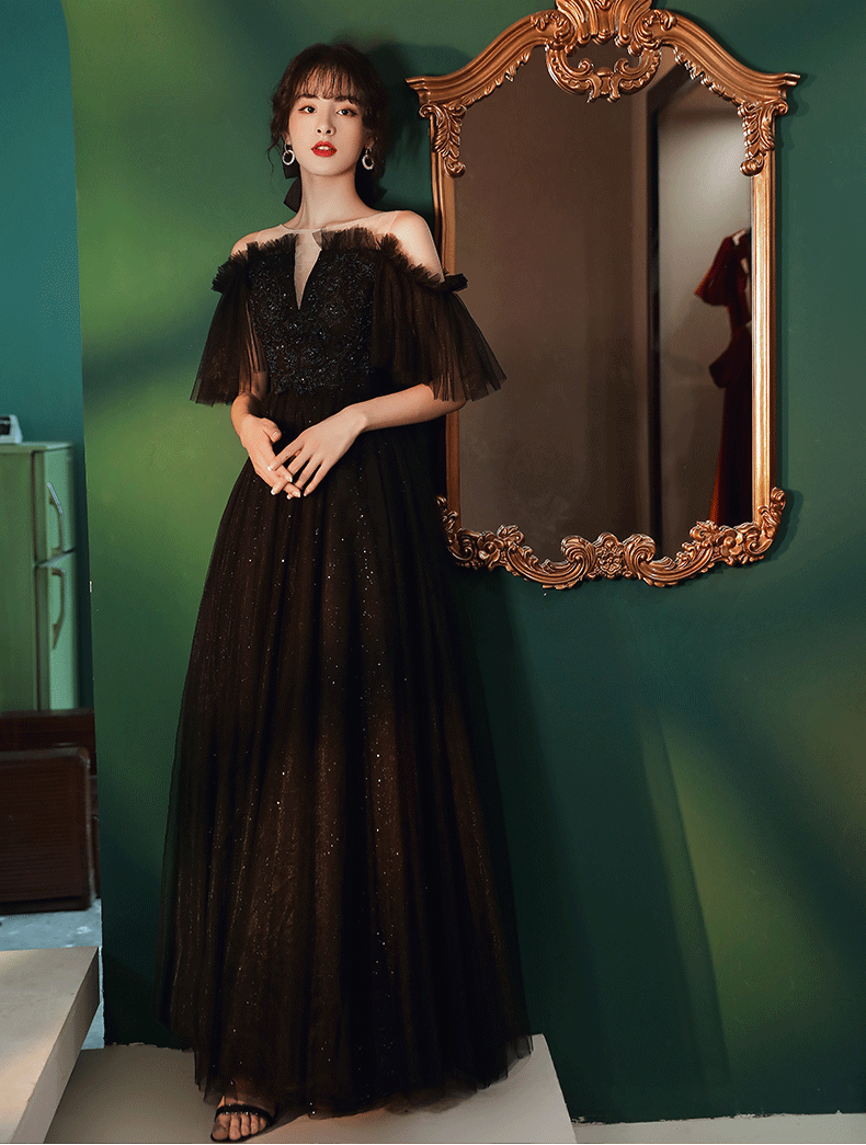 Evening dress, black skirt, bright catchy style
