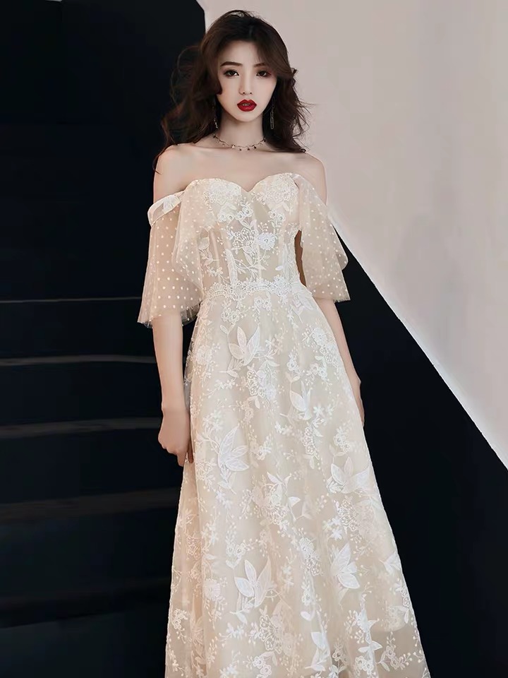 • White long evening dress, 2021 collection, fitted, Birthday gift, open shoulders