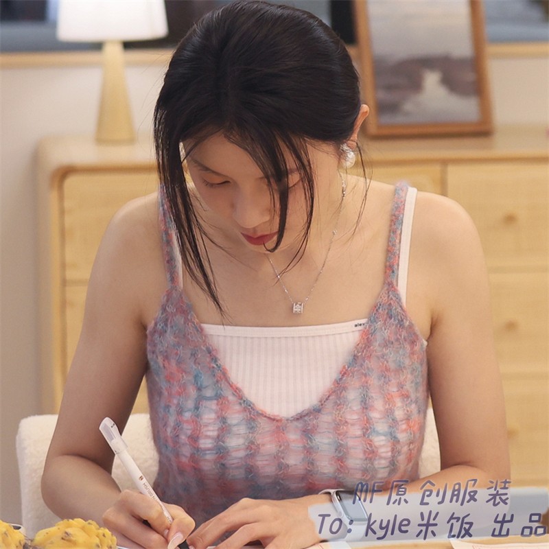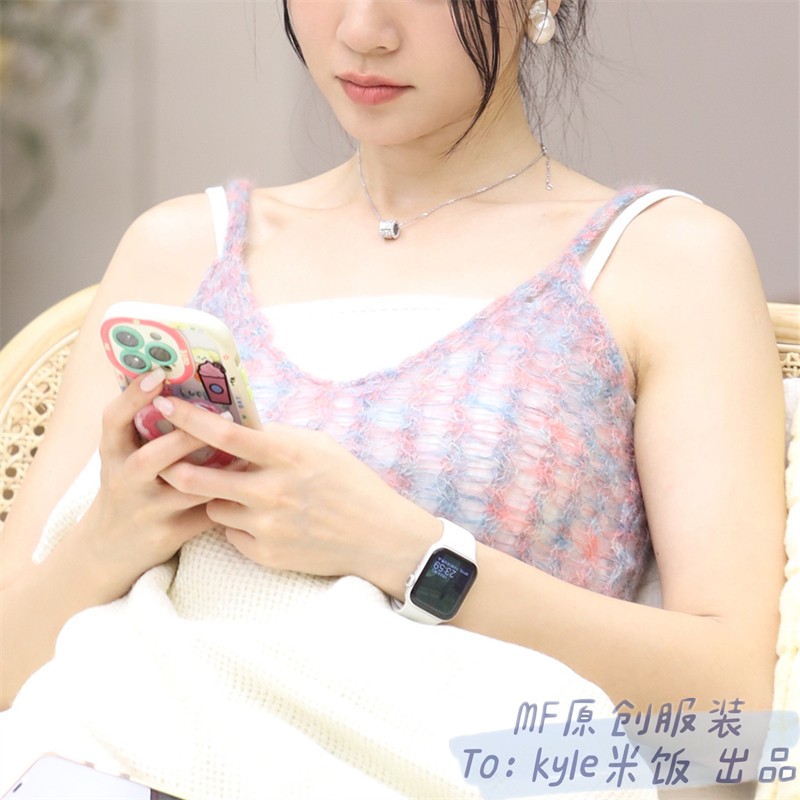 - Color: Knitted mini-skirt, T-shirt, top with cups