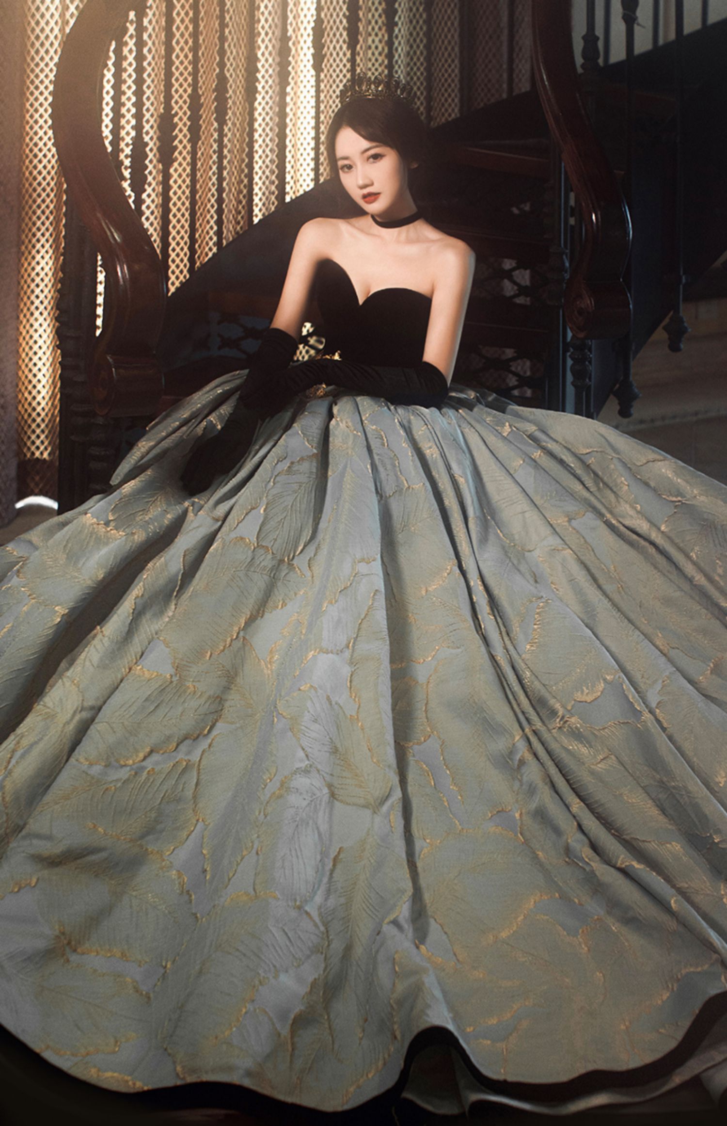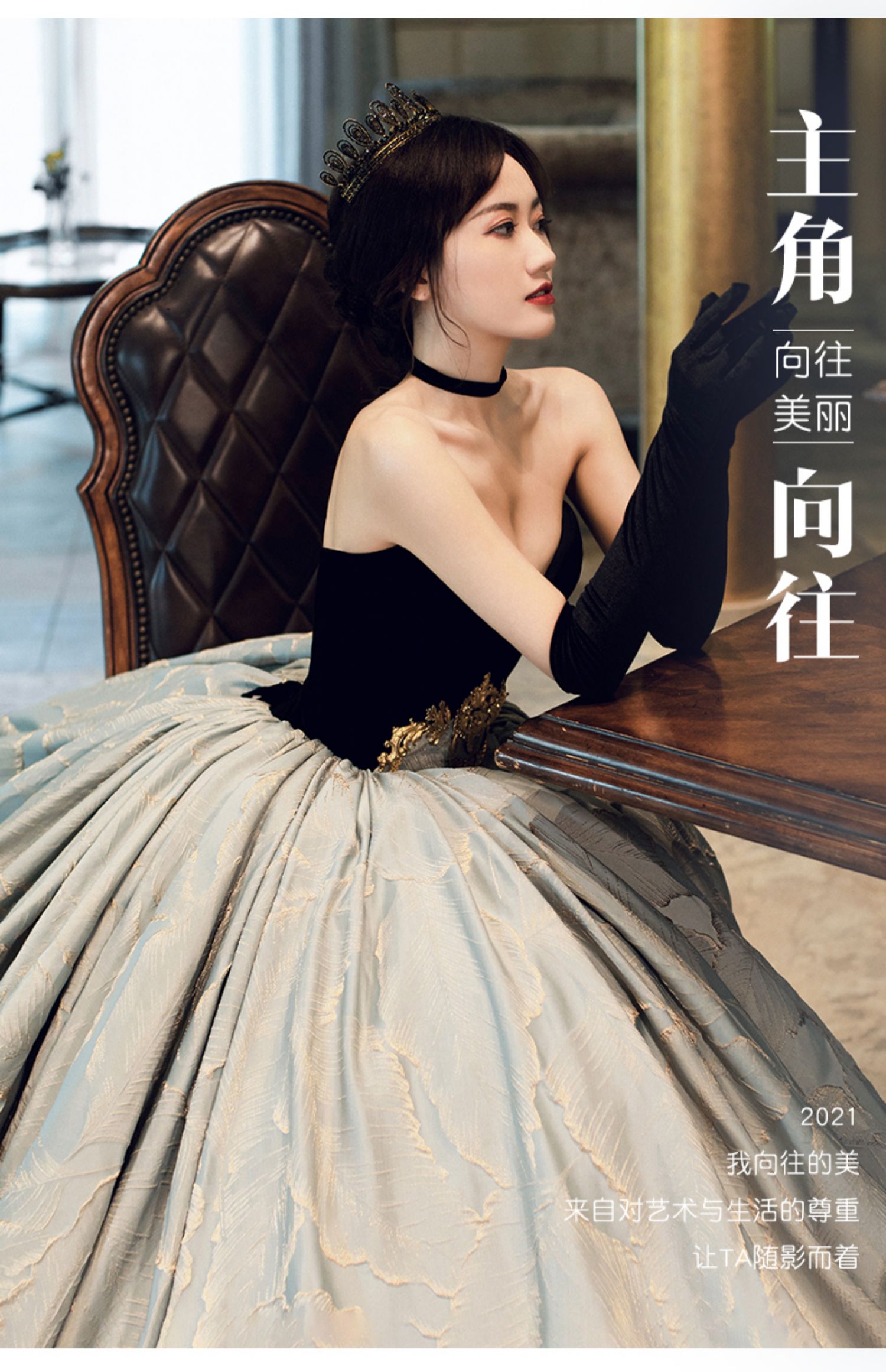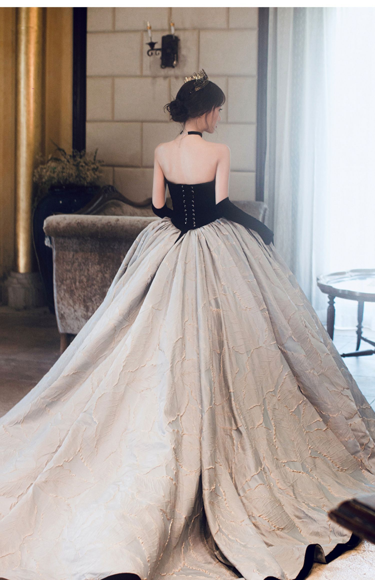 Black gloves, open shoulders