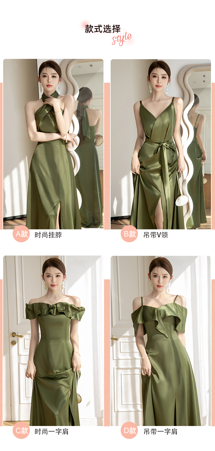 - Color: Green 822 hanging neck A long model;Green, long, V-neckline;Green, long, open shoulders;Green, long, lifting effect;Green 822 hanging neck A medium long model;Green, long, V-neckline, mid-length;Green, long, open shoulders, mid-length;Green, long, lifting effect, mid-length;Champagne color 822 hanging neck A long model;Long, champagne color, V-neckline;Long, champagne color, open shoulders;Long, champagne color, lifting effect;Long, champagne color, mid-length;Long, champagne color, V-neckline, mid-length;Long, champagne color, open shoulders, mid-length;Long, champagne color, lifting effect, mid-length